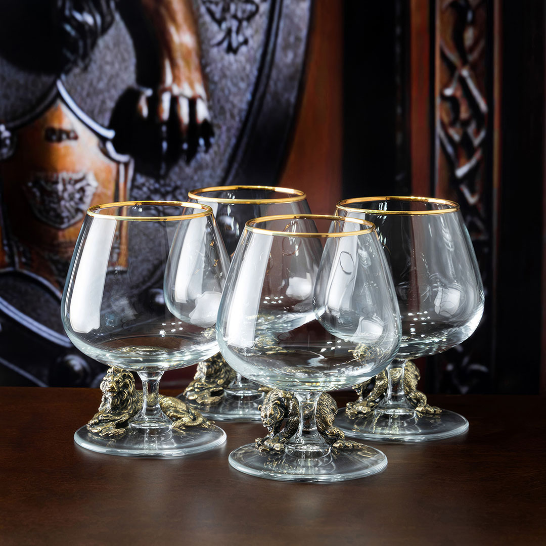 Подарочный набор из 4 бокалов для коньяка "Лев и Медведь Гризли" в подарочной коробке