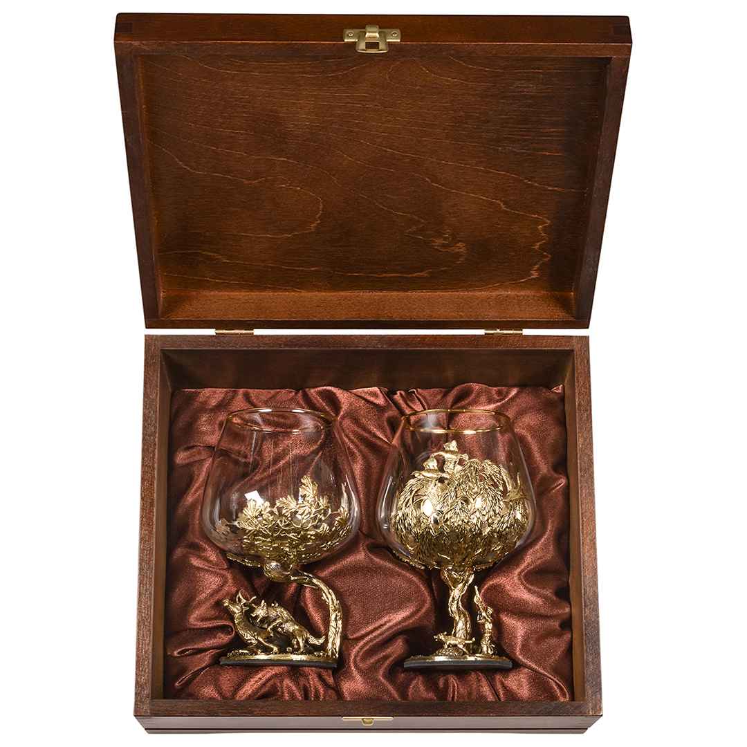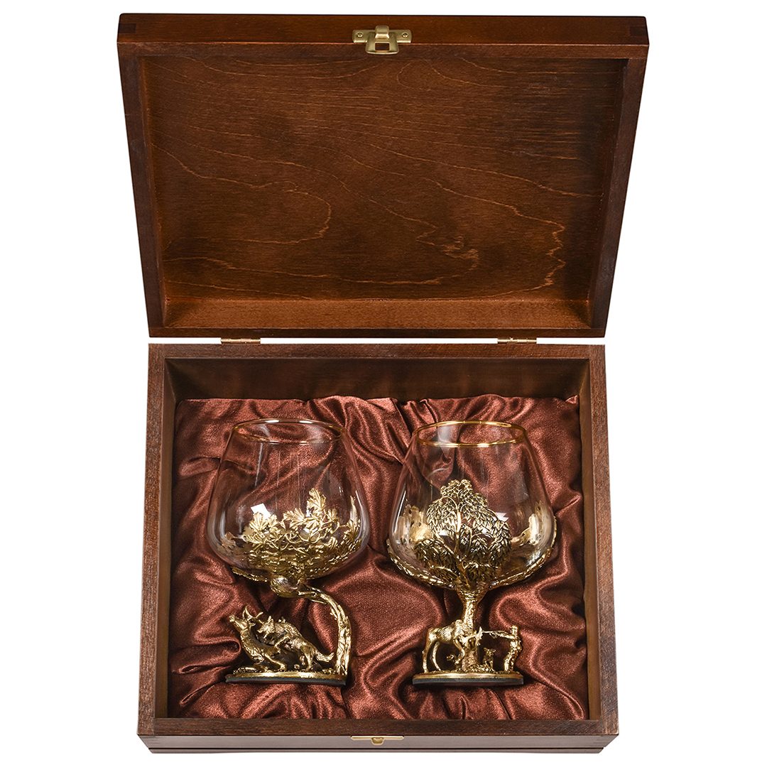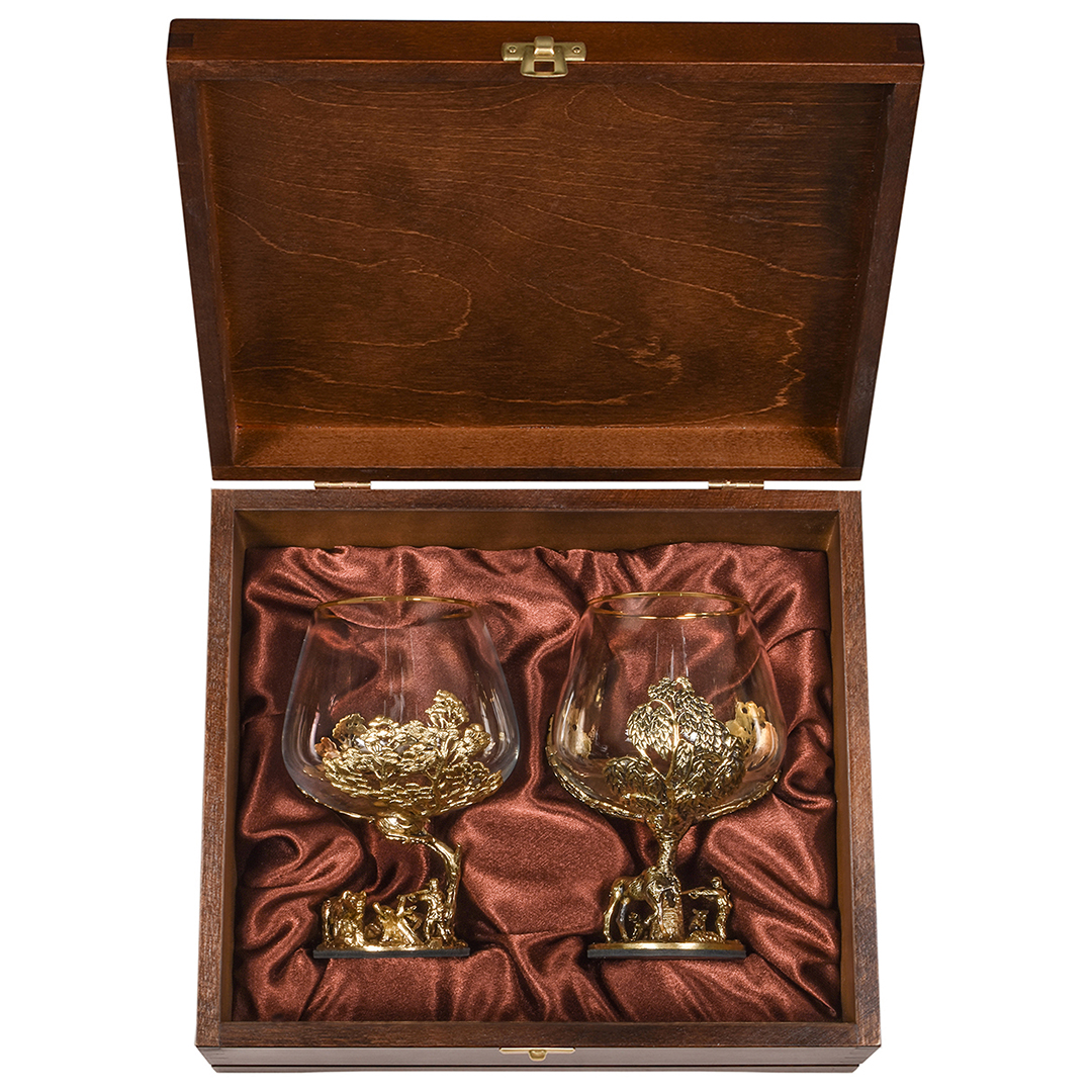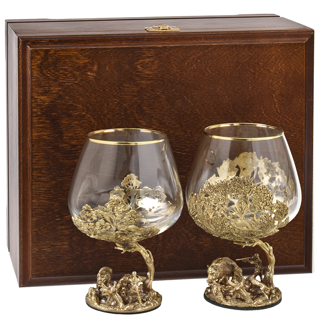 Набор 2 бокала для коньяка "Кабан и "Медведь", в шкатулке из массива