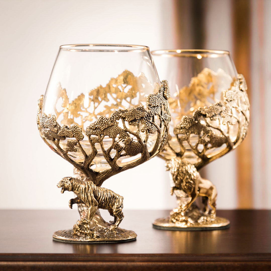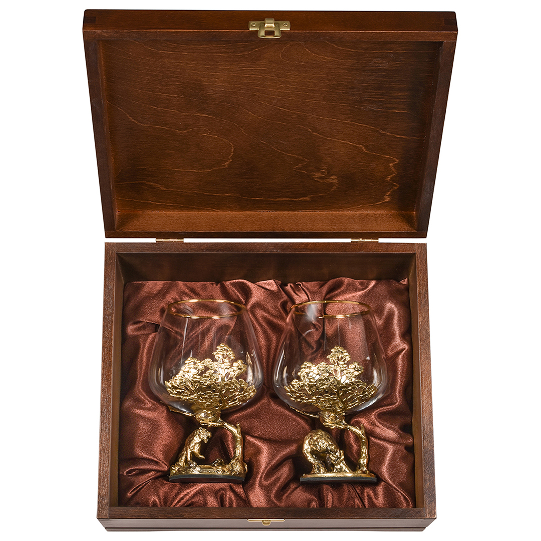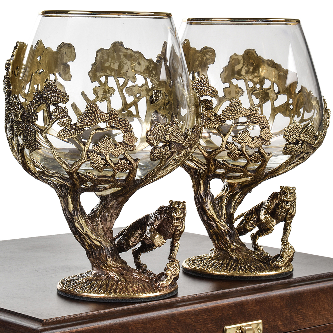 Набор 2 бокала для коньяка "Лев" и "Тигр", в шкатулке из массива