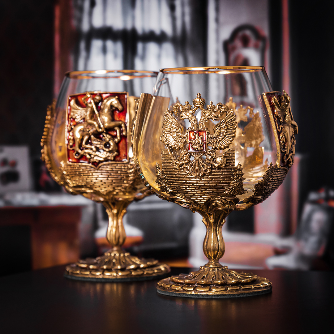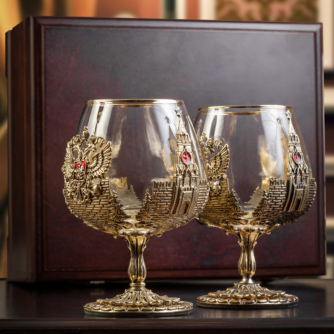 Набор 2 бокала для коньяка "Россия", в шкатулке из массива