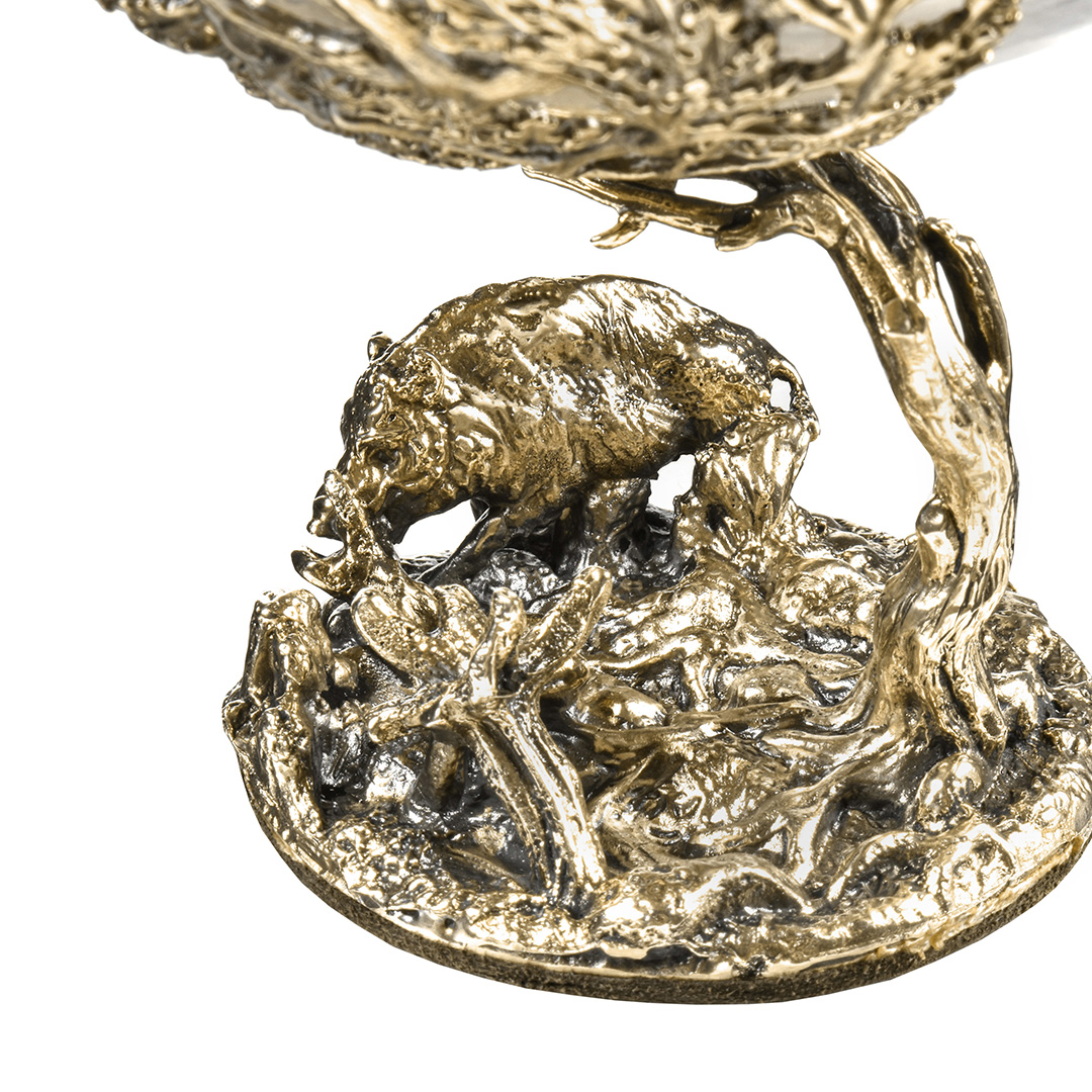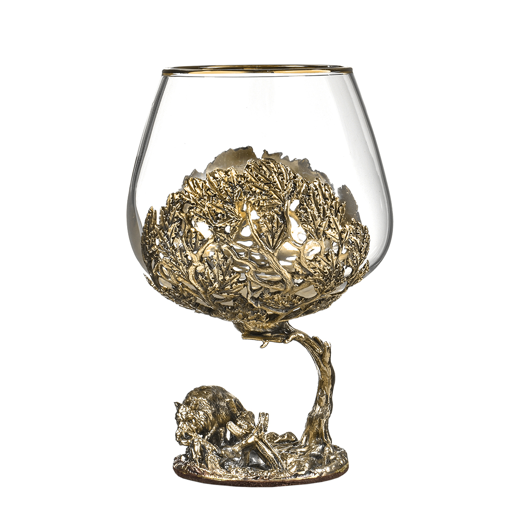 Набор включает 2 бокала для коньяка с латунным основанием "Кабан и "Медведь" в деревянной шкатулке из массива.В отличие от многих других товаров на рынке, эти бокалы изготовлены исключительно из российских материалов, что придает им уникальность и исключительность.