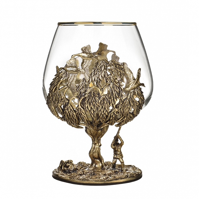 Набор включает 2 бокала для коньяка с латунным основанием "Охота на Медведя" и "Охота на Уток" в деревянной шкатулке из массива.В отличие от многих других товаров на рынке, эти бокалы изготовлены исключительно из российских материалов, что придает им уникальность и исключительность.