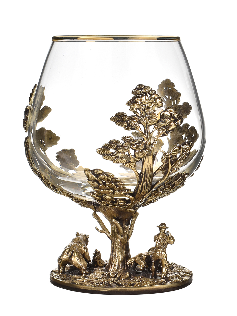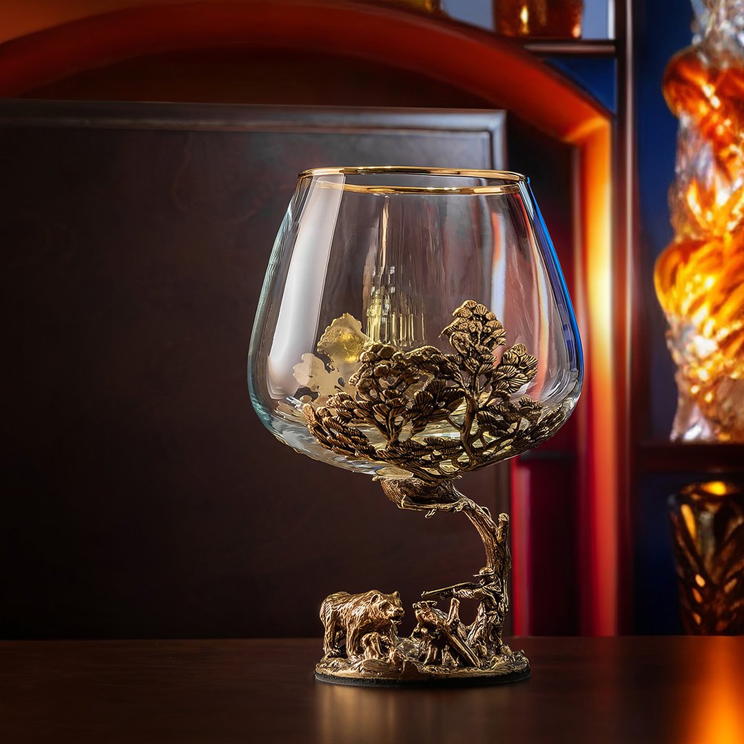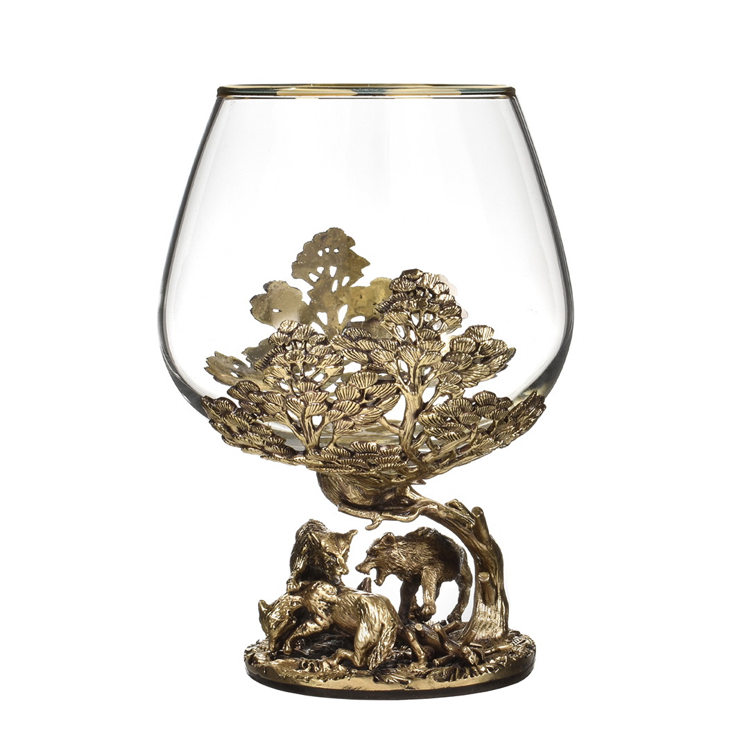 Набор включает 2 бокала для коньяка с латунным основанием "Охота на медведя" и "Волки" в деревянной шкатулке из массива.В отличие от многих других товаров на рынке, эти бокалы изготовлены исключительно из российских материалов, что придает им уникальность и исключительность.