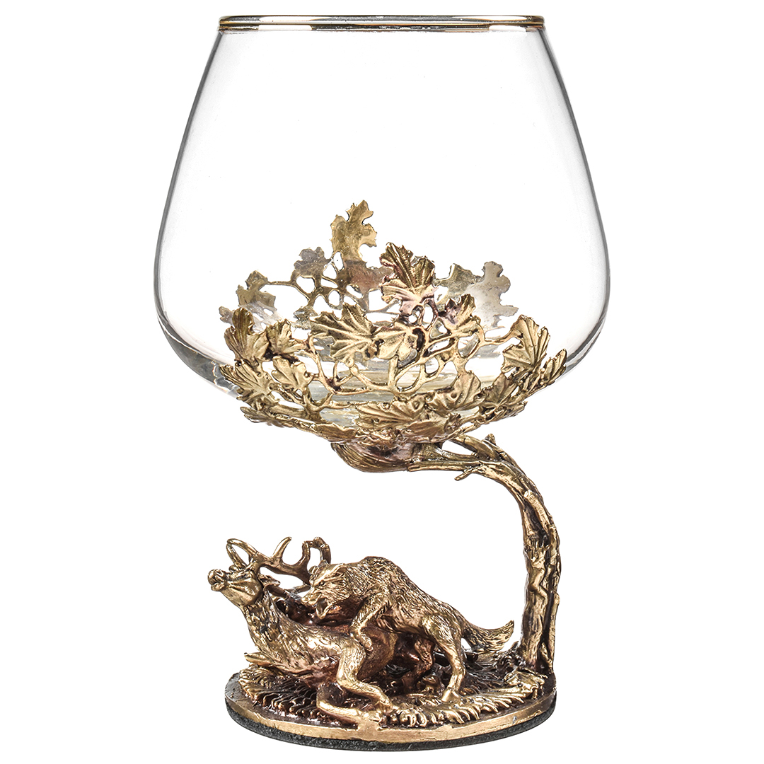 Набор 2 бокала для коньяка "Охота на Оленя" и "Охота на Медведя", в шкатулке из массива