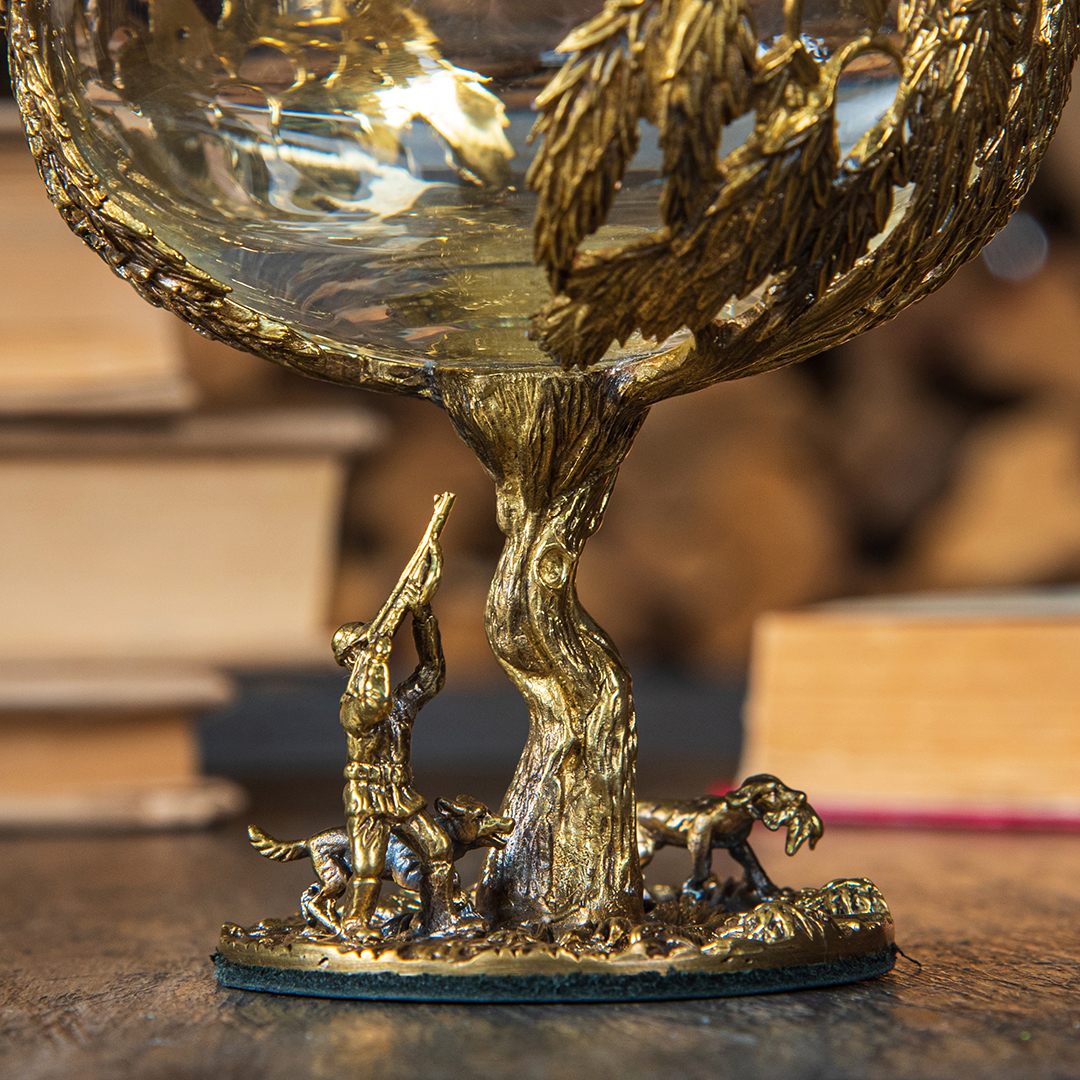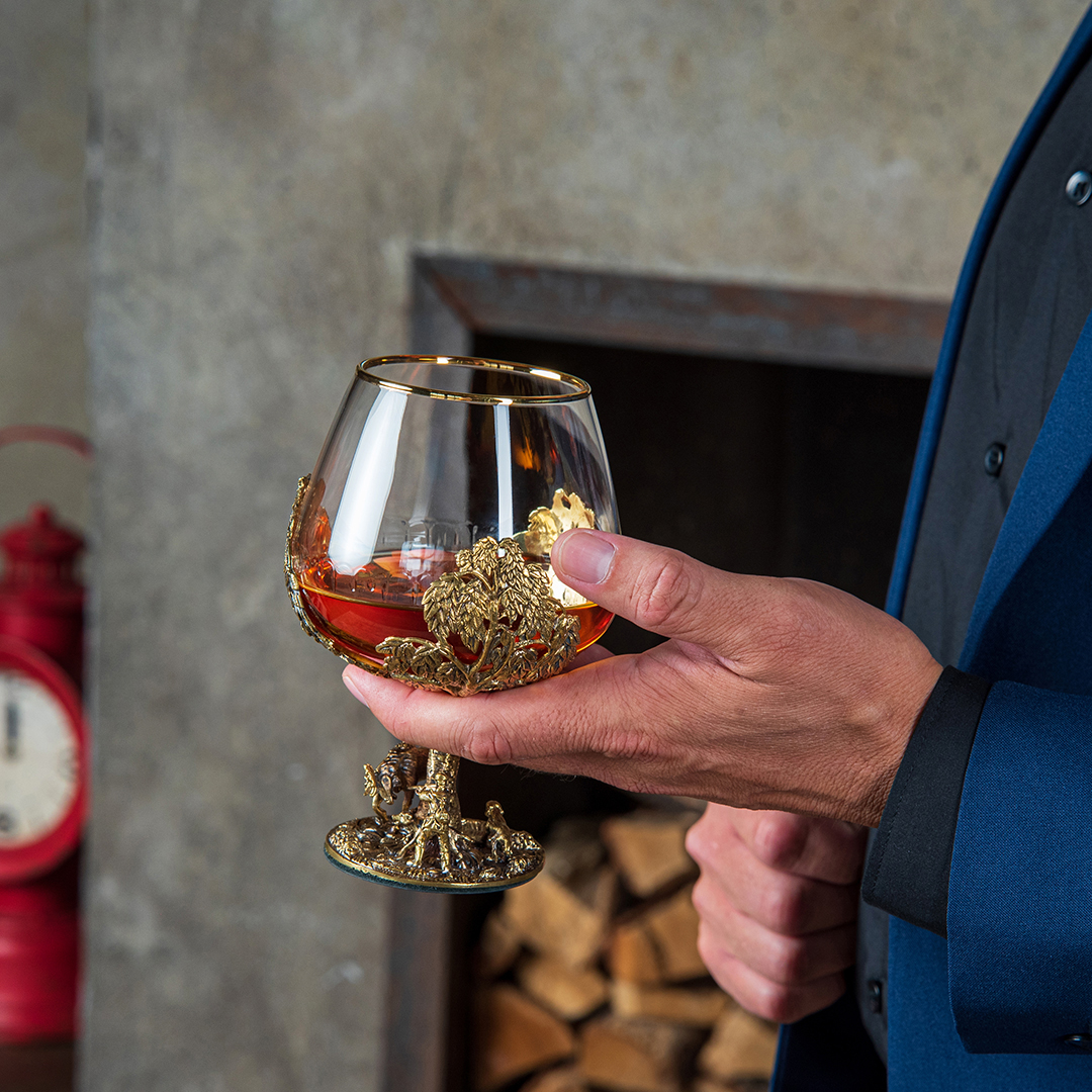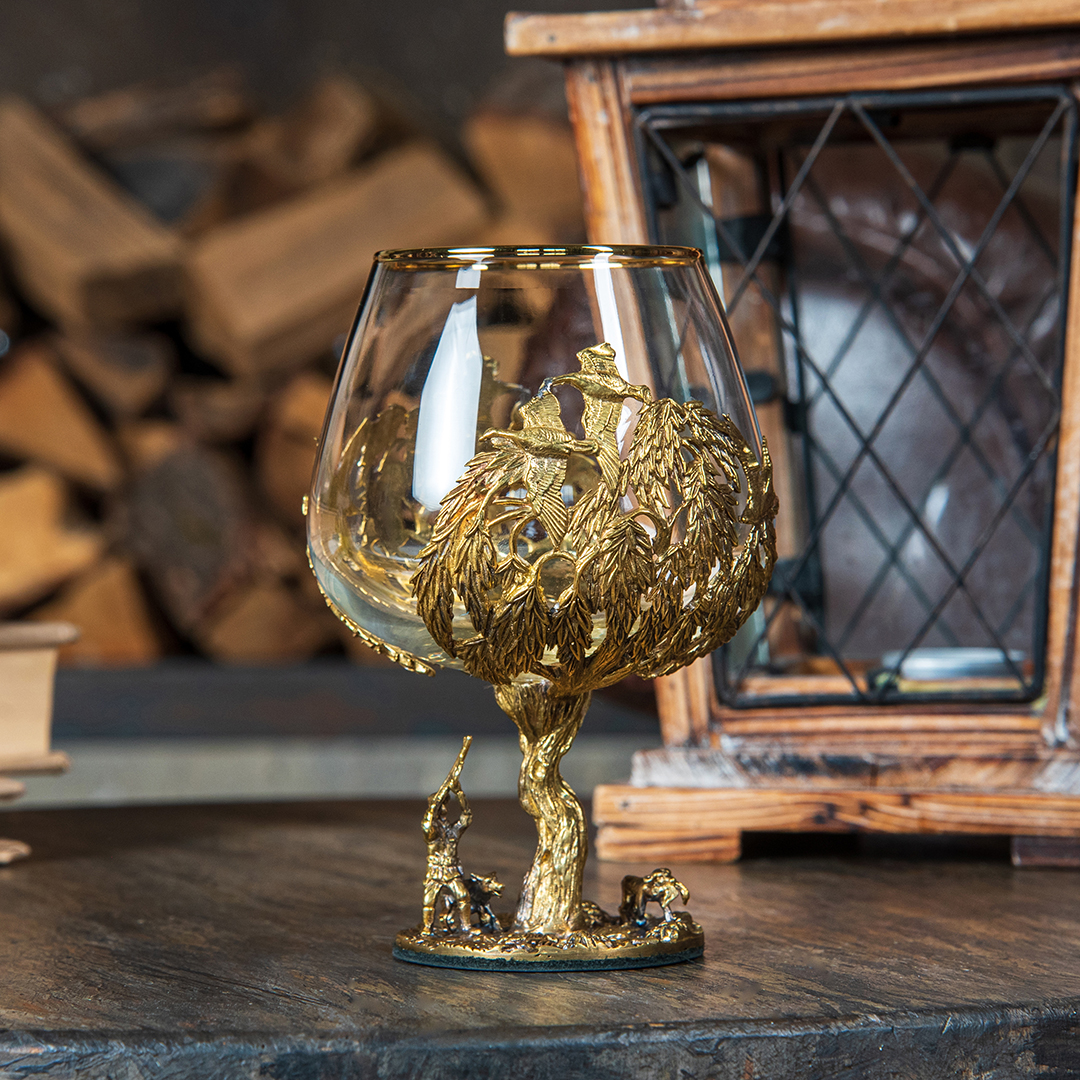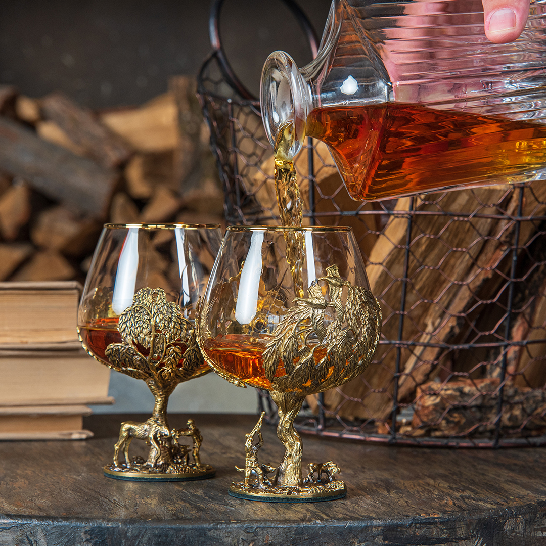 Набор включает 2 бокала для коньяка с латунным основанием "Охота на Уток" и "Охота на Лося" в черной коробке из дизайнерского картона.В отличие от многих других товаров на рынке, эти бокалы изготовлены исключительно из российских материалов, что придает им уникальность и исключительность.