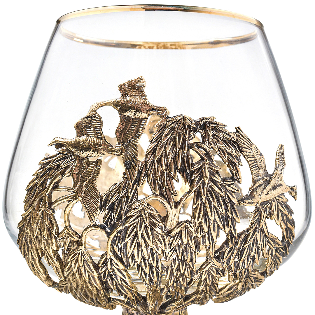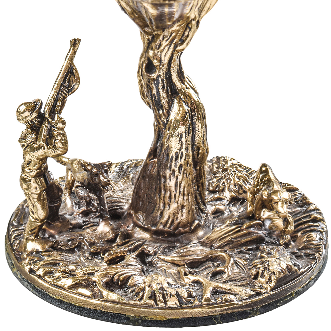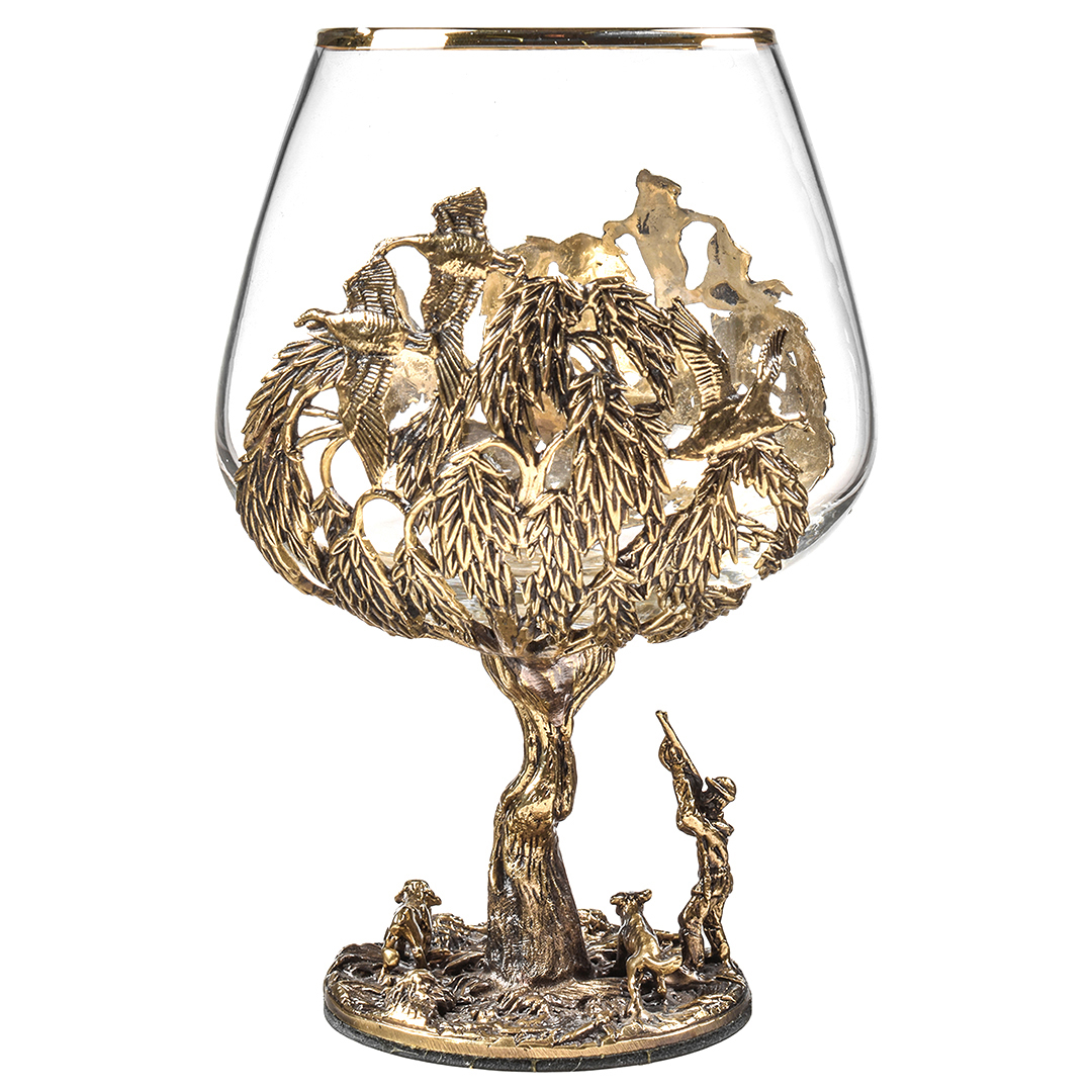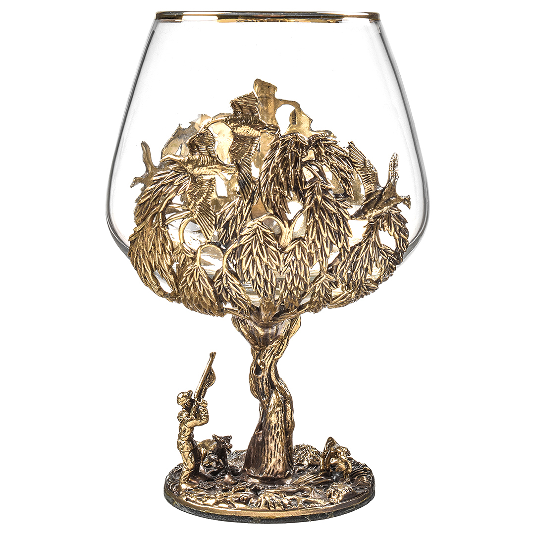 Набор включает 2 бокала для коньяка с латунным основанием "Охота на Вепря" и "Охота на Утку" в деревянной шкатулке из массива.В отличие от многих других товаров на рынке, эти бокалы изготовлены исключительно из российских материалов, что придает им уникальность и исключительность.