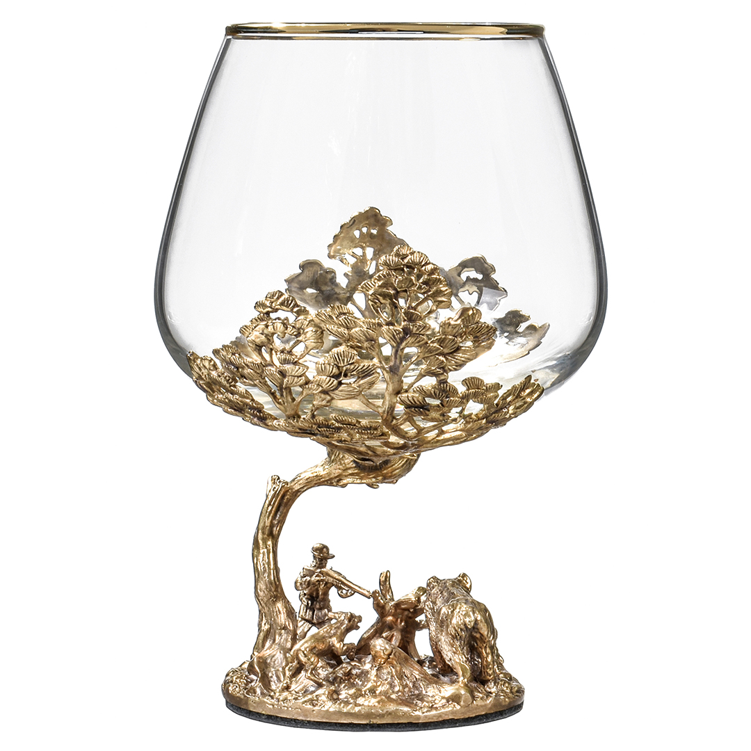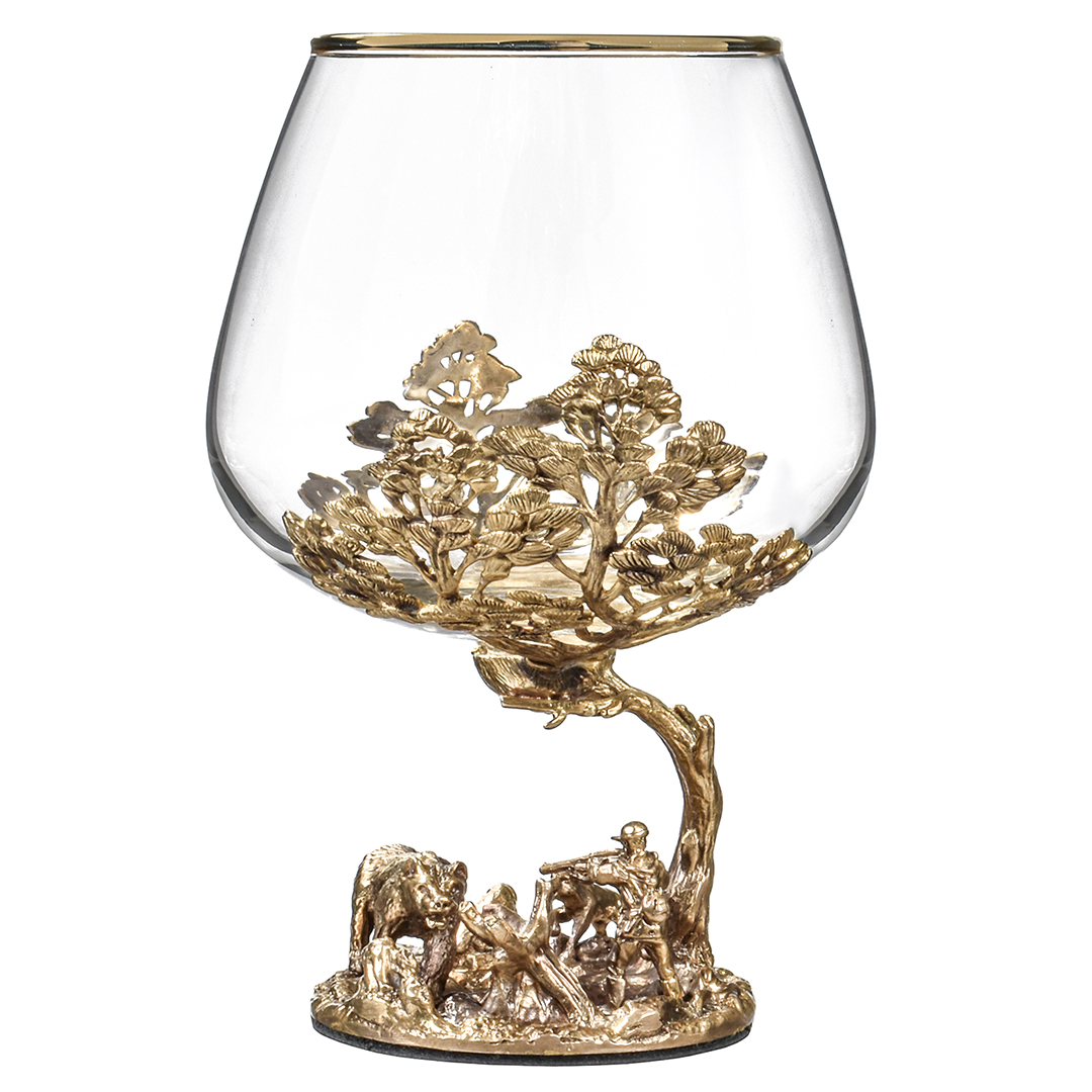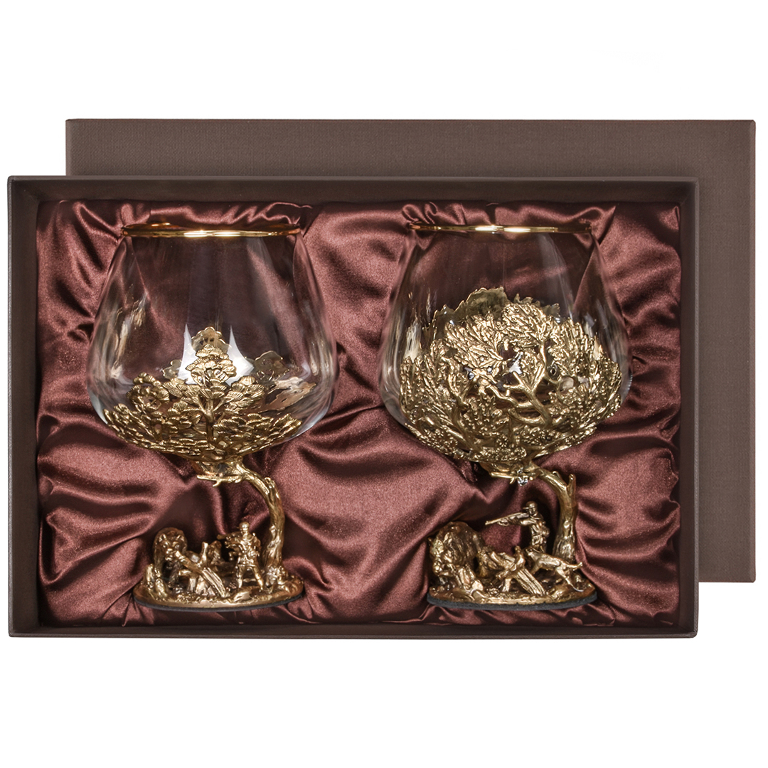 Набор 2 бокала для коньяка (Р) "Охота на Медведя +Охота на Кабана",в черной подарочной упаковке