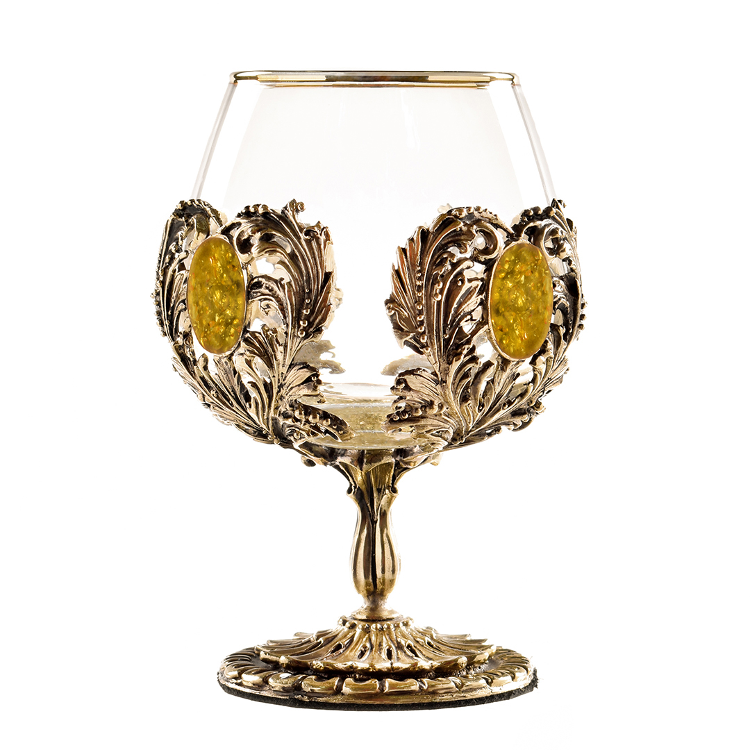 Набор 2 бокала для коньяка с искусственным камнем "Янтарь желтый", в шкатулке из массива