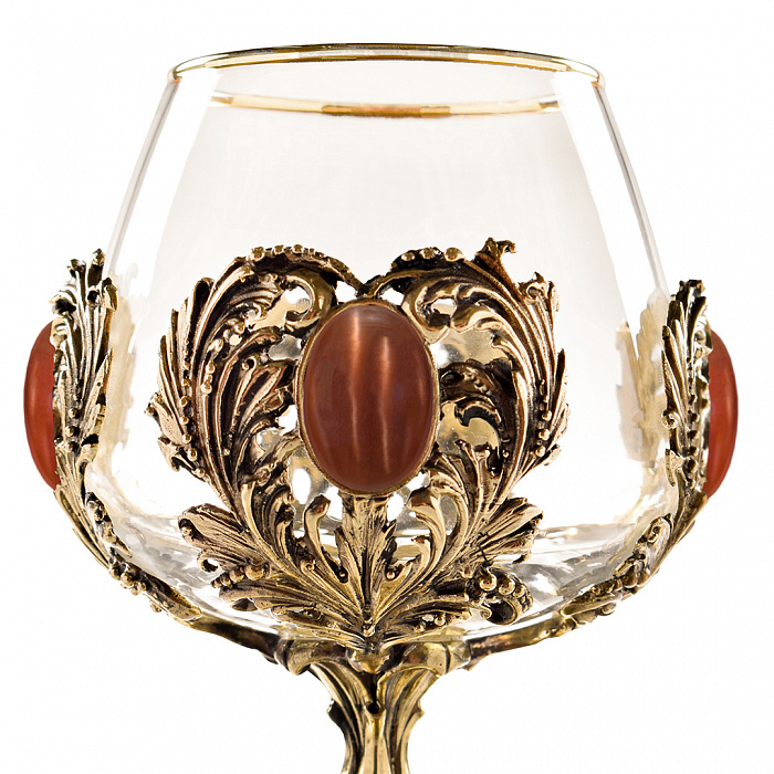 Набор 2 бокала для коньяка с камнем "Кошачий глаз" и "Сердолик", в шкатулке из массива