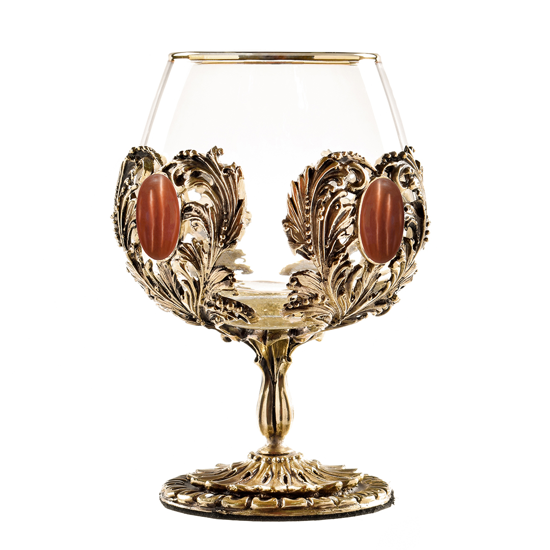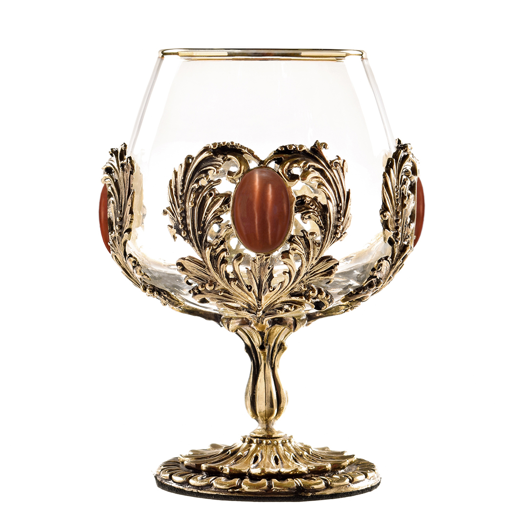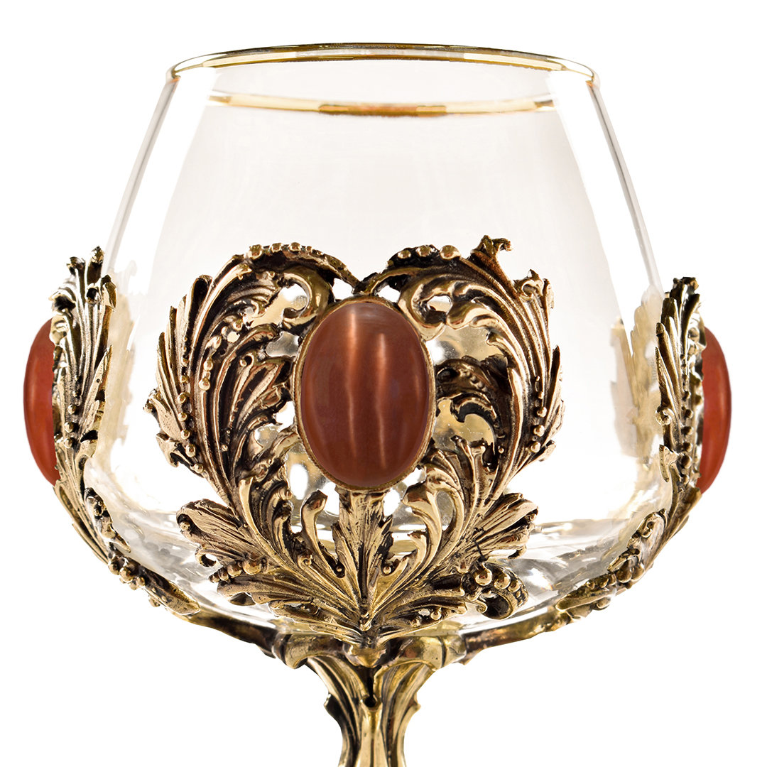 Набор 2 бокала для коньяка с камнем "Кошачий глаз", в шкатулке из массива