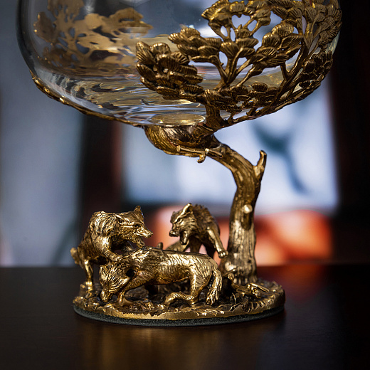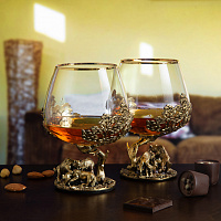 Набор 2 бокала для коньяка "Волки", в шкатулке из массива