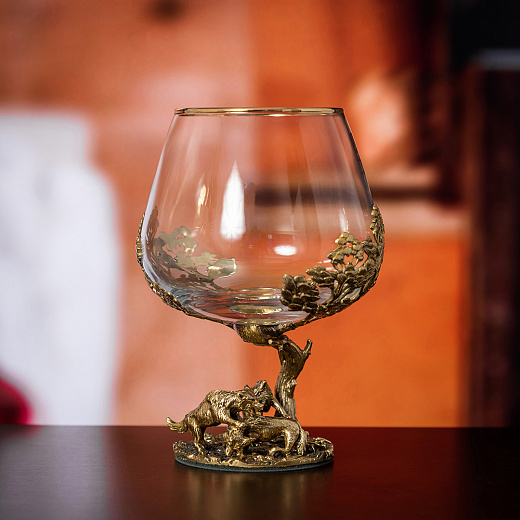 Набор включает 2 бокала для коньяка с латунным основанием "Волки" в деревянной шкатулке из массива.В отличие от многих других товаров на рынке, эти бокалы изготовлены исключительно из российских материалов, что придает им уникальность и исключительность.