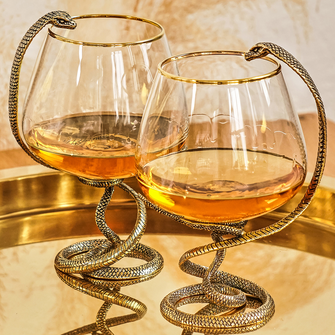 Набор 2 бокала для коньяка "Змея", в шкатулке из массива