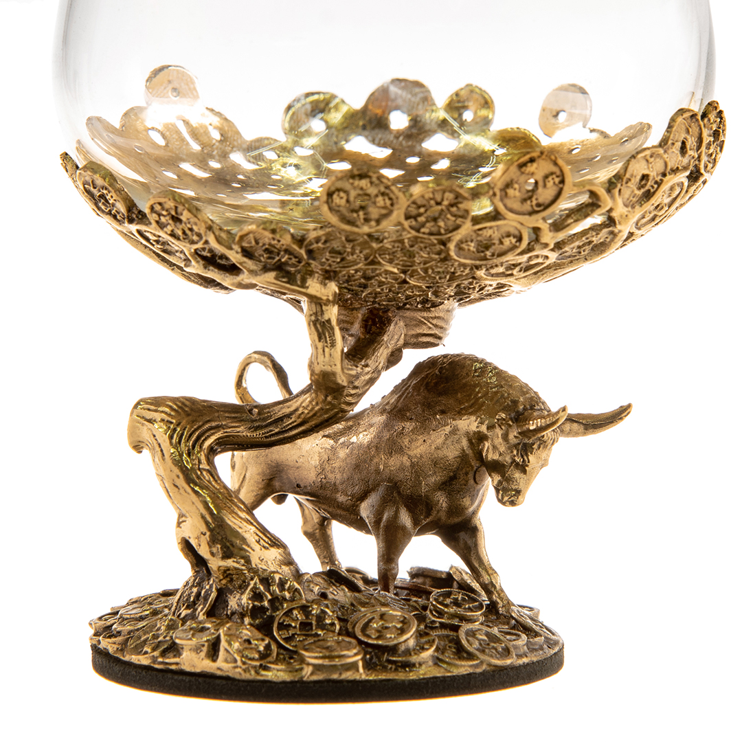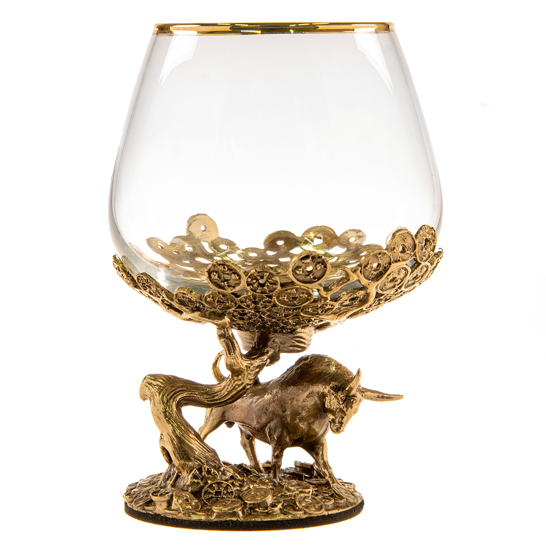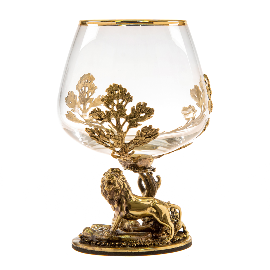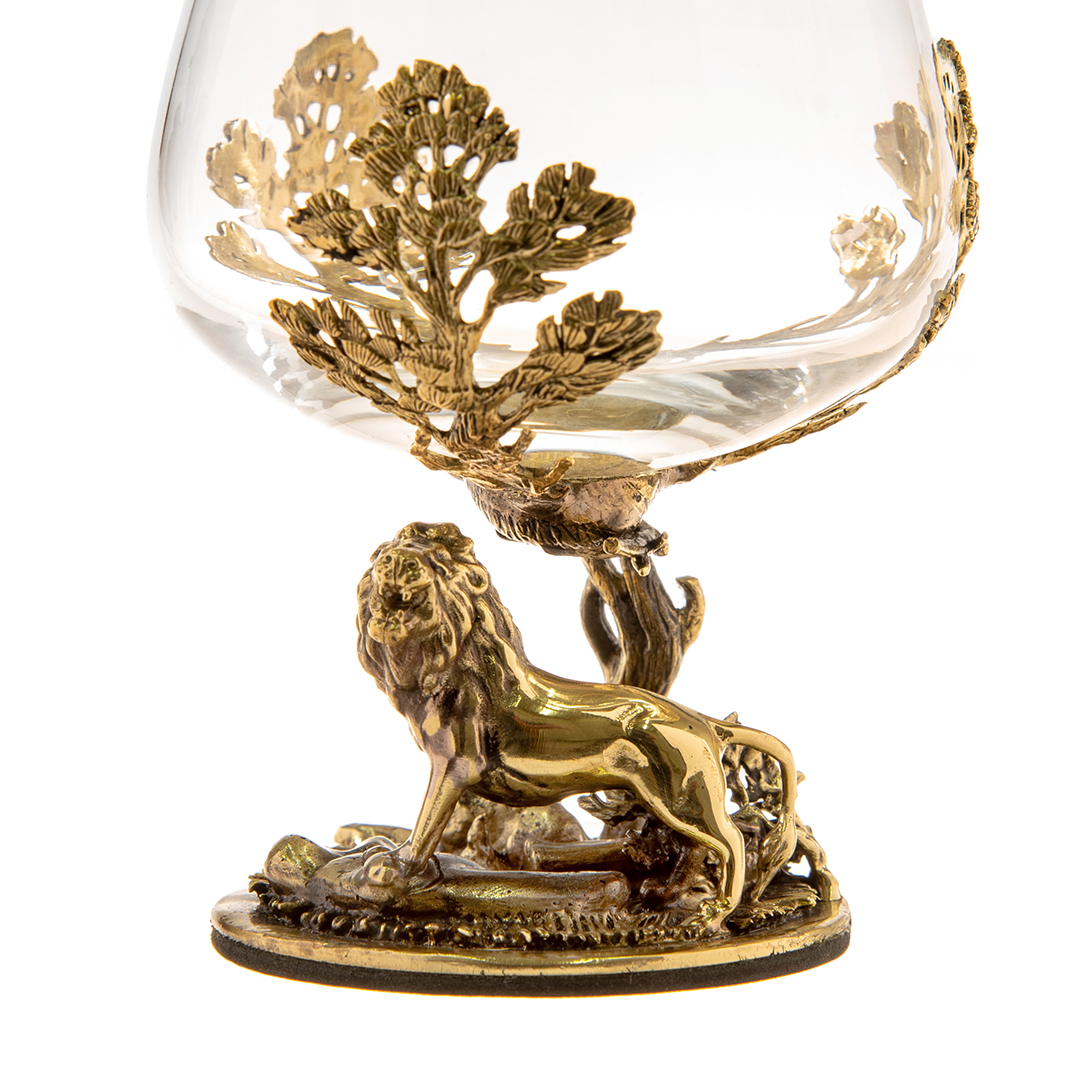 Бокал: стекло с декорированием, патинированная латунь, ручная работа. |