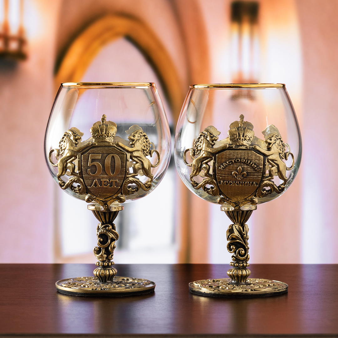 Набор из двух бокалов для коньяка Настоящий мужчина+С юбилеем 50 лет в подарочной коробке