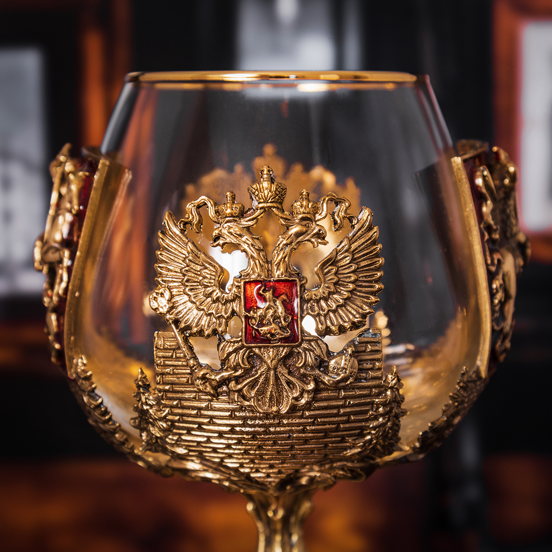 Бокал: стекло с золотым декорированием ,патинированная латунь ручная работа |