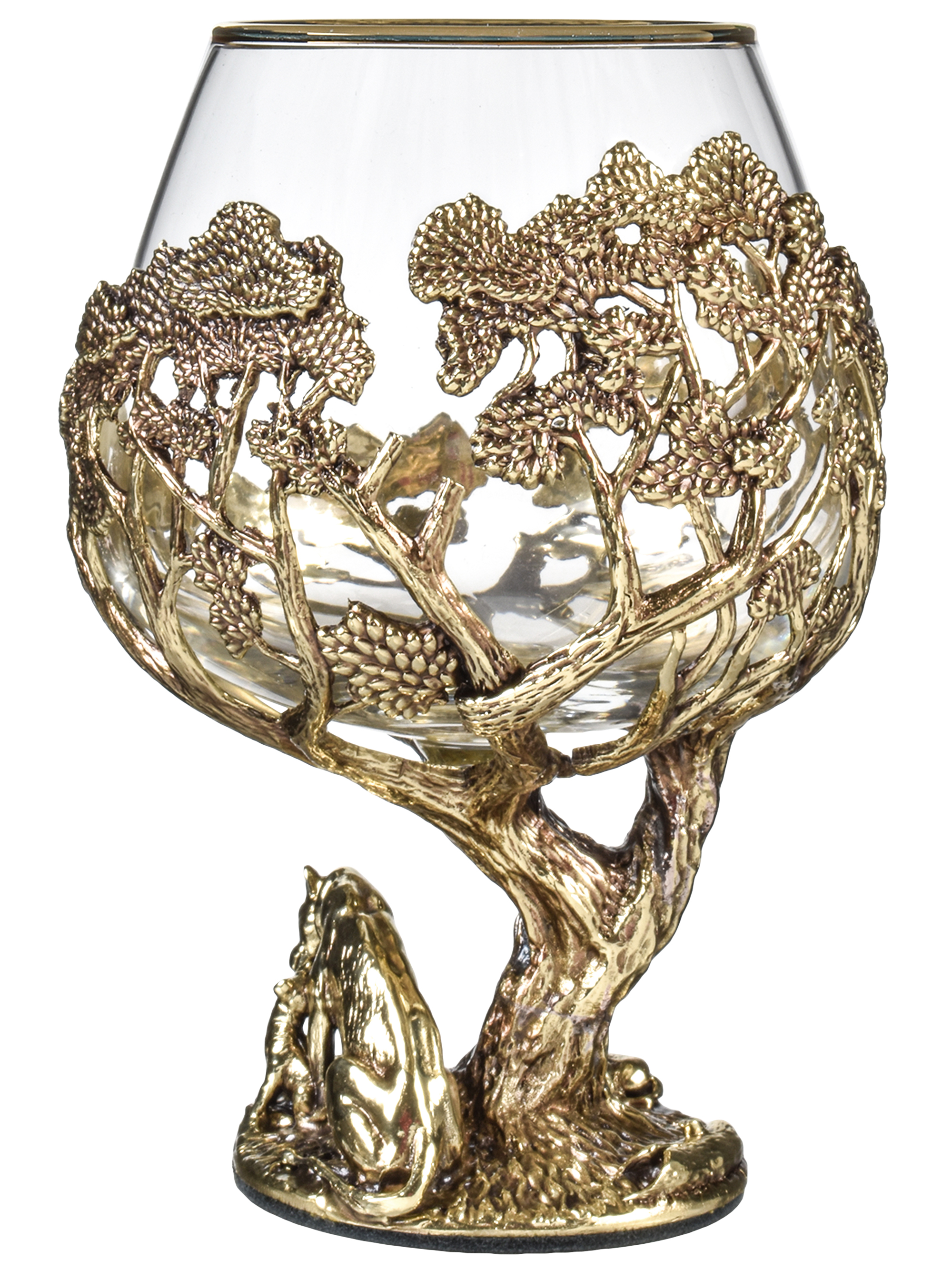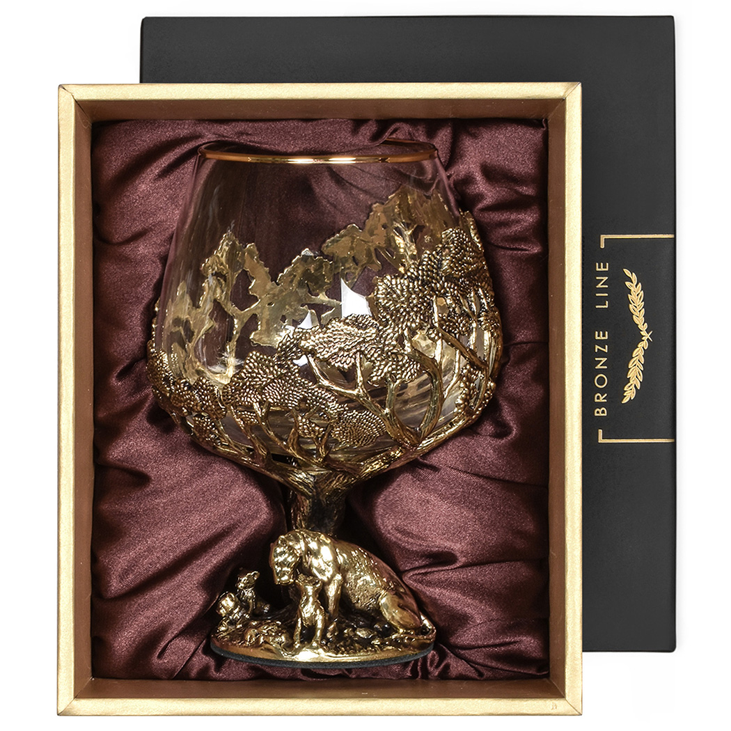 Бокал: стекло с декорированием, патинированная латунь, ручная работа. |