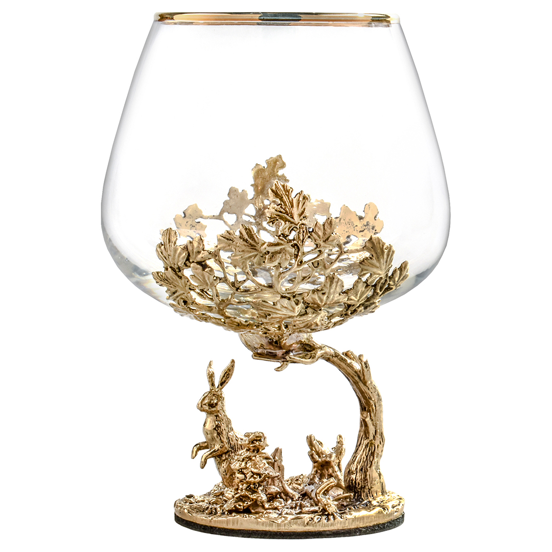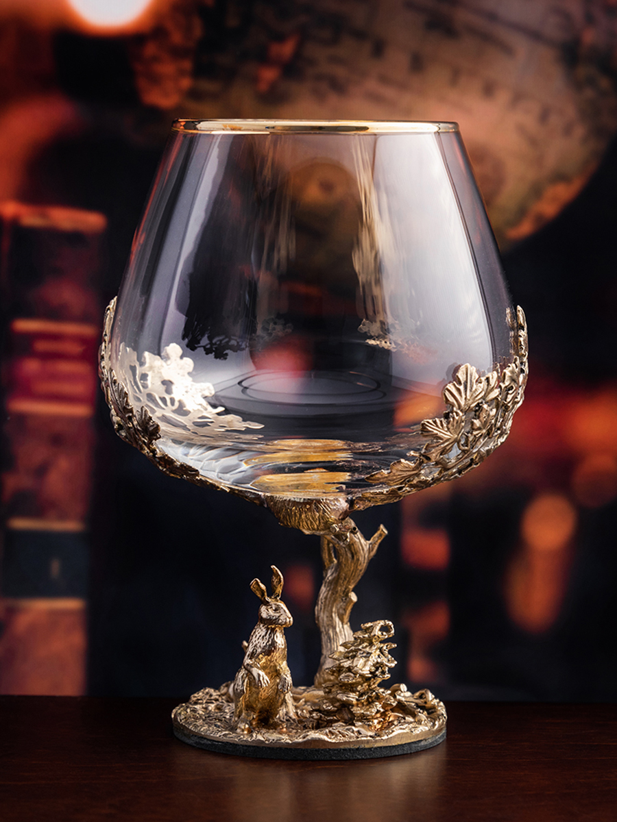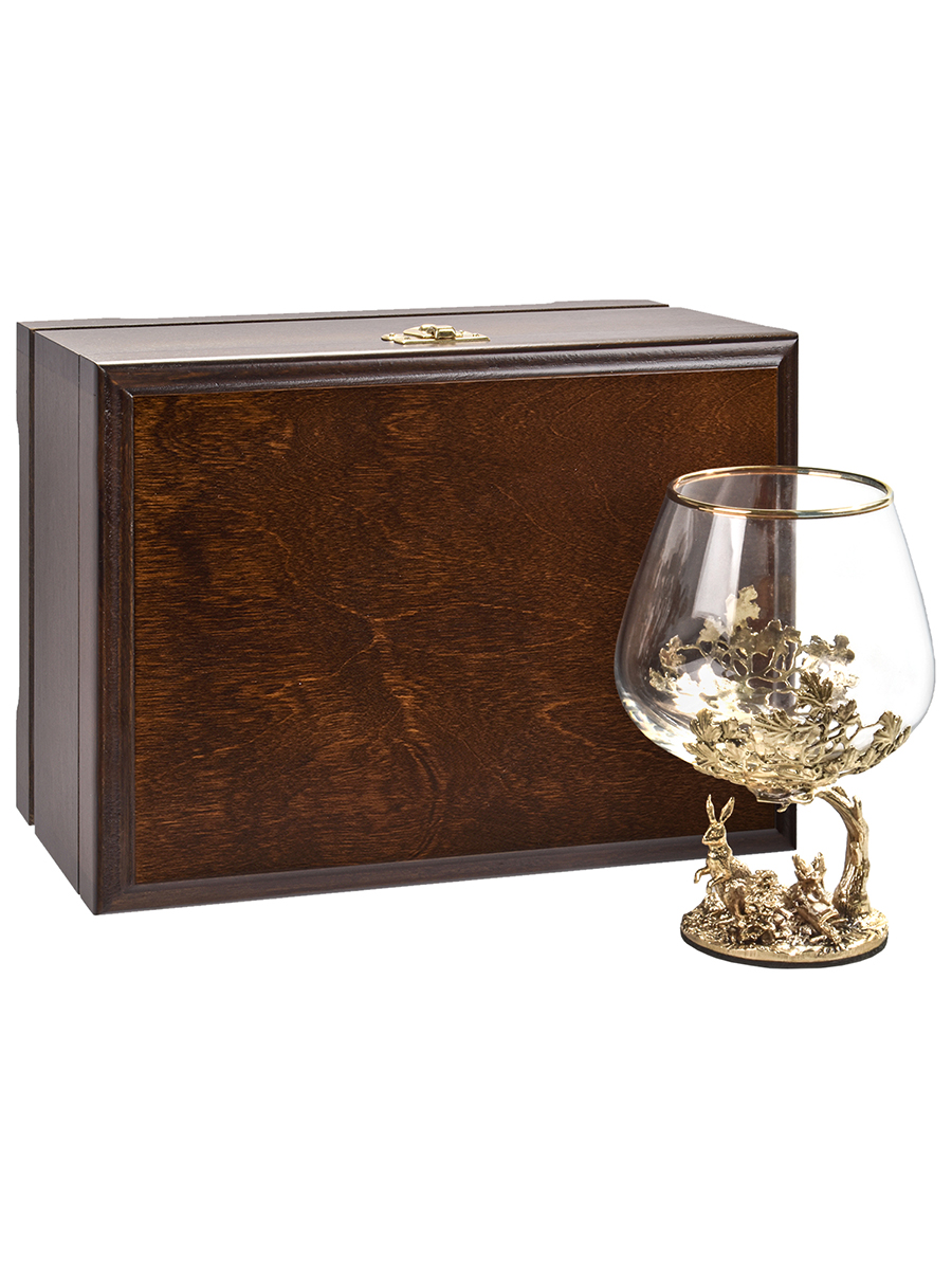 Бокал для коньяка "Заяц" 420 мл в деревянной шкатулке