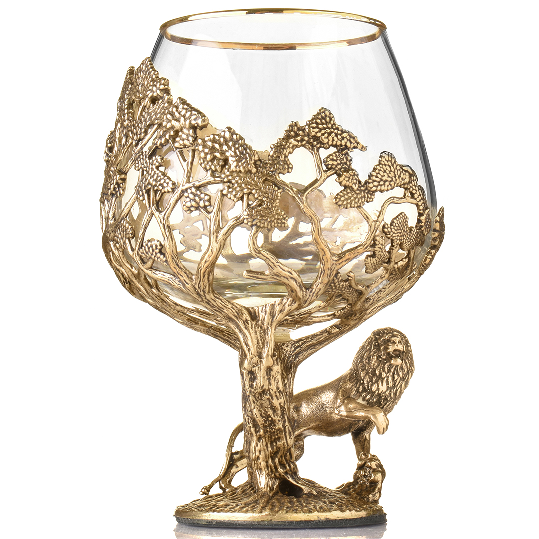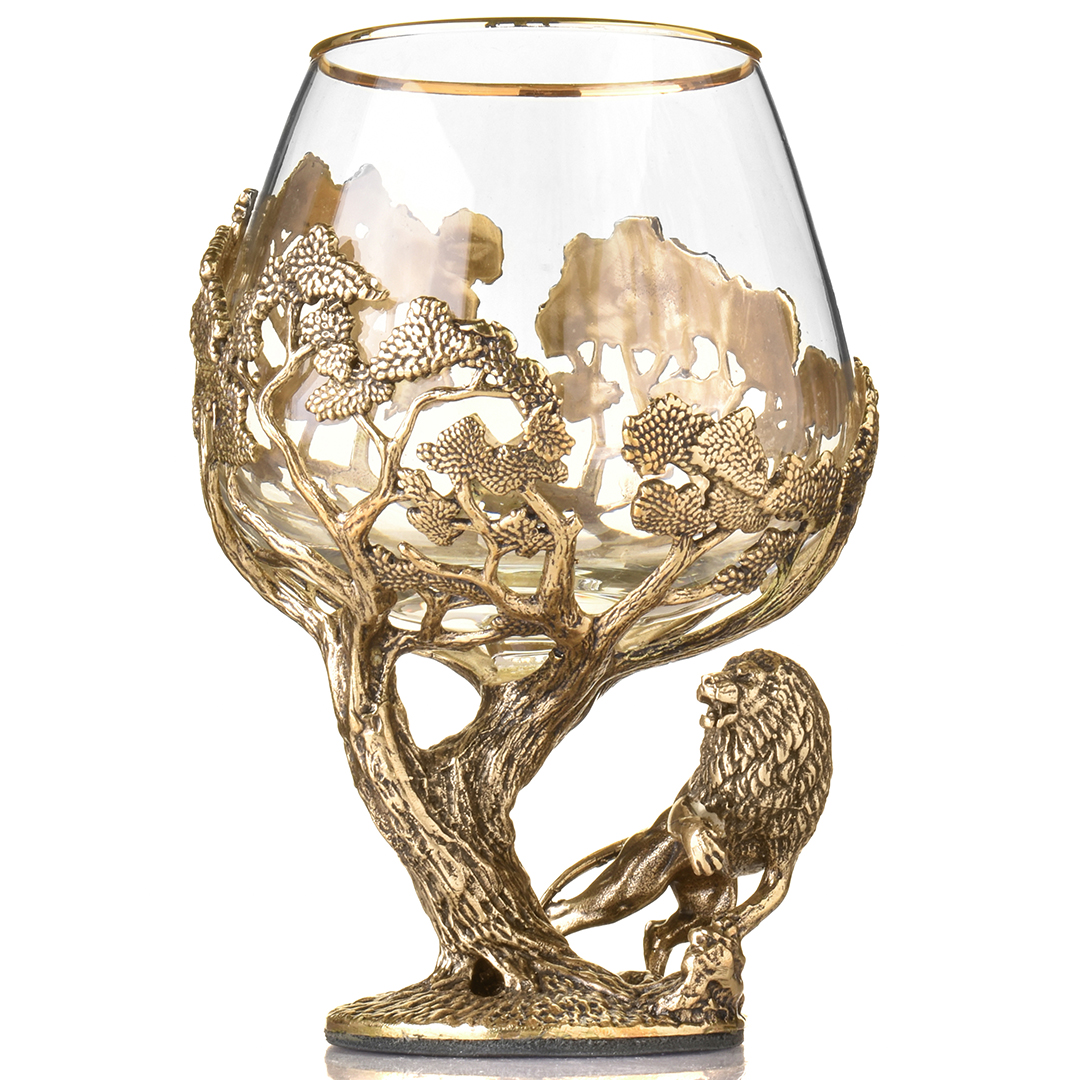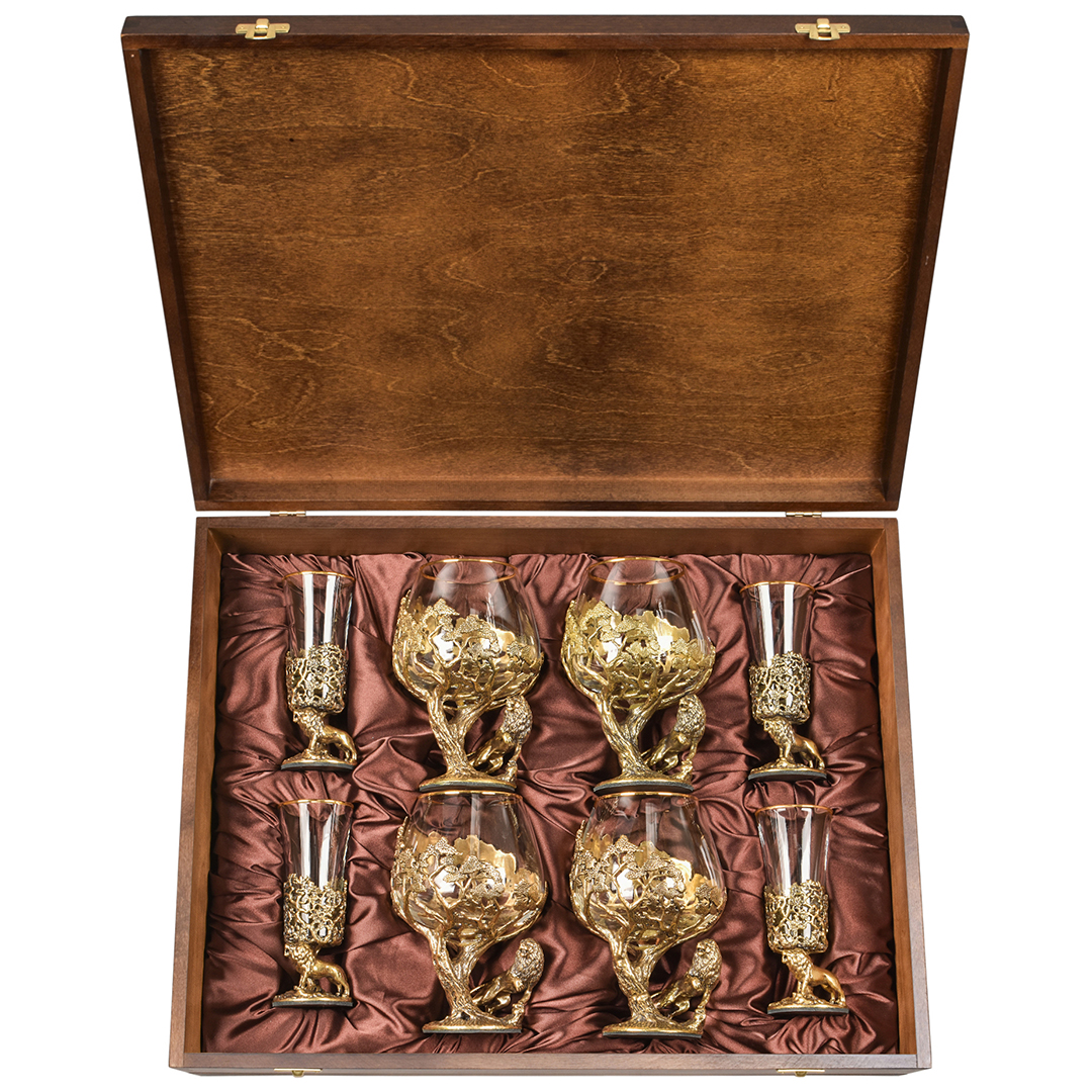 Набор 4 бокала для коньяка и 4 лафитника "Лев ROYAL", в шкатулке из массива