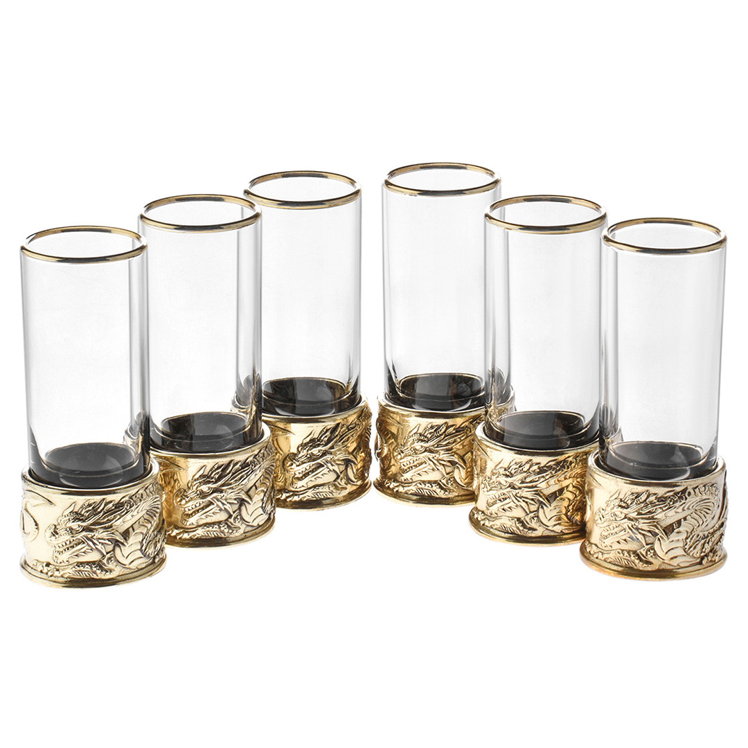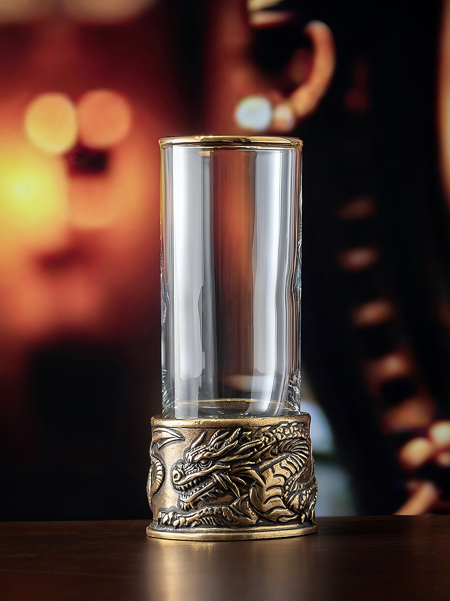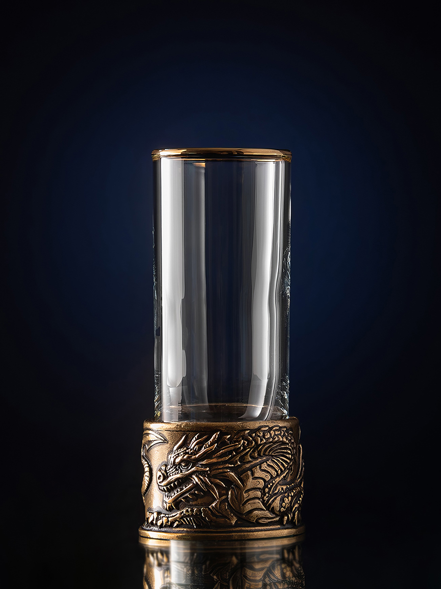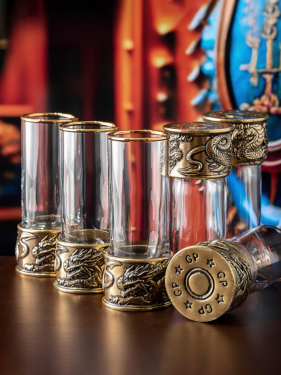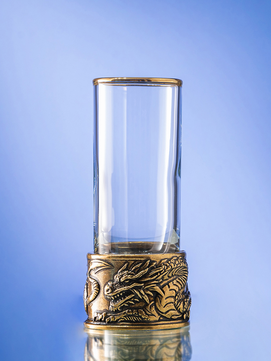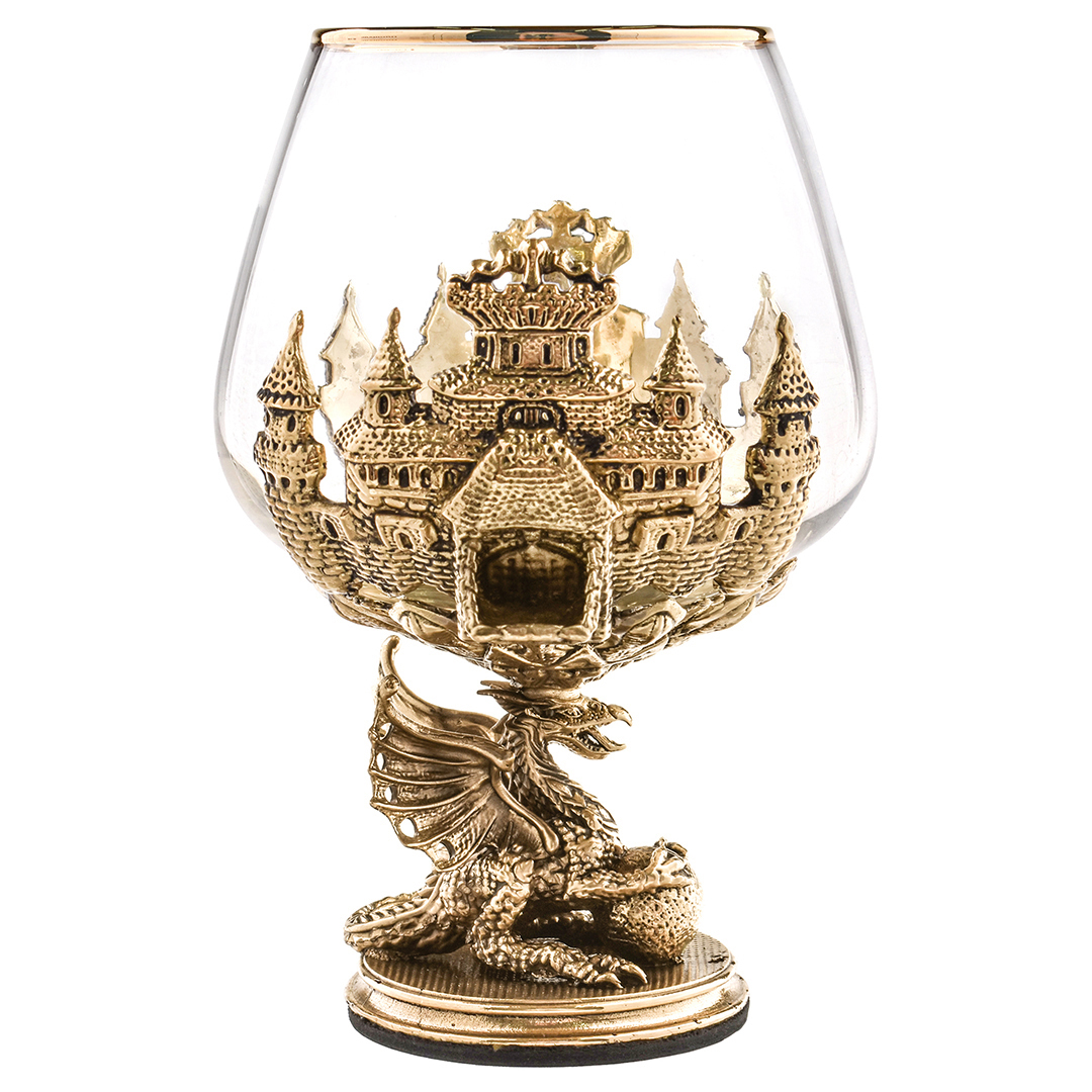 Набор 4 бокала для коньяка (Р) "Дракон на шаре",6 стопок патрон "Дракон", в деревянной шкатулке.
