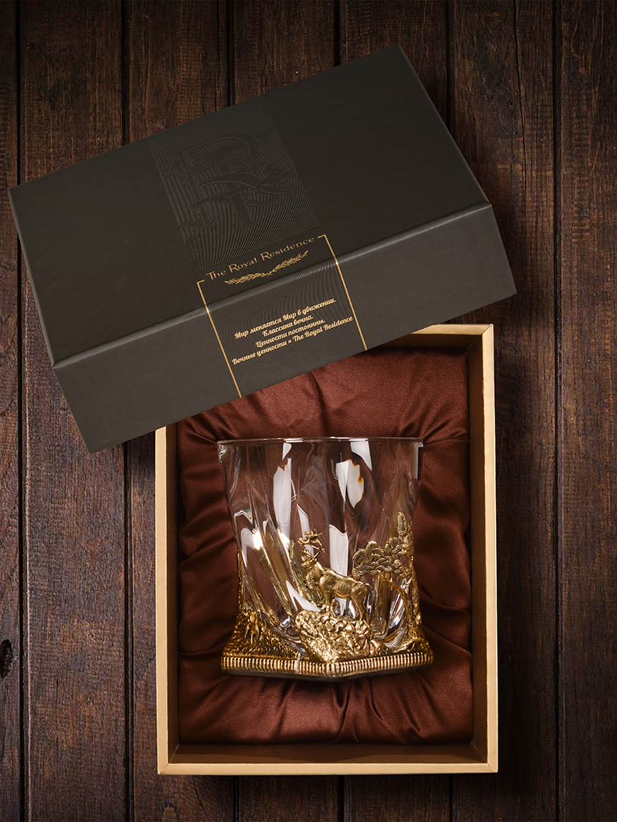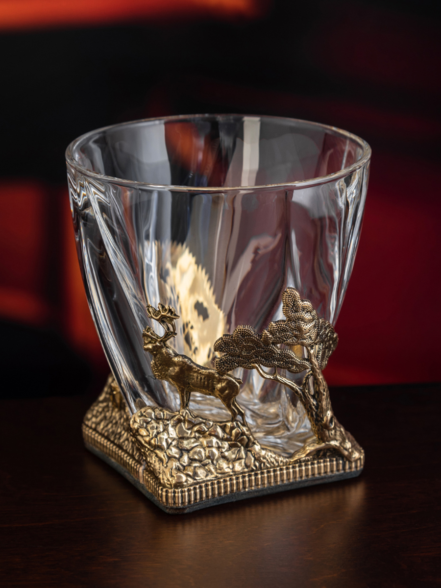Бокал для ВИСКИ ручная работа охота на оленя в подарочной упаковке