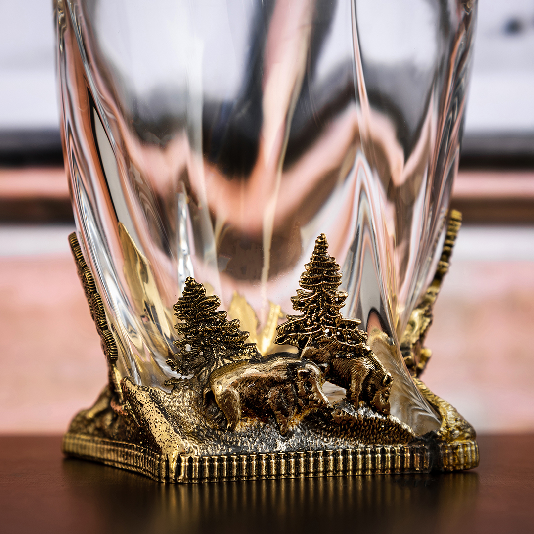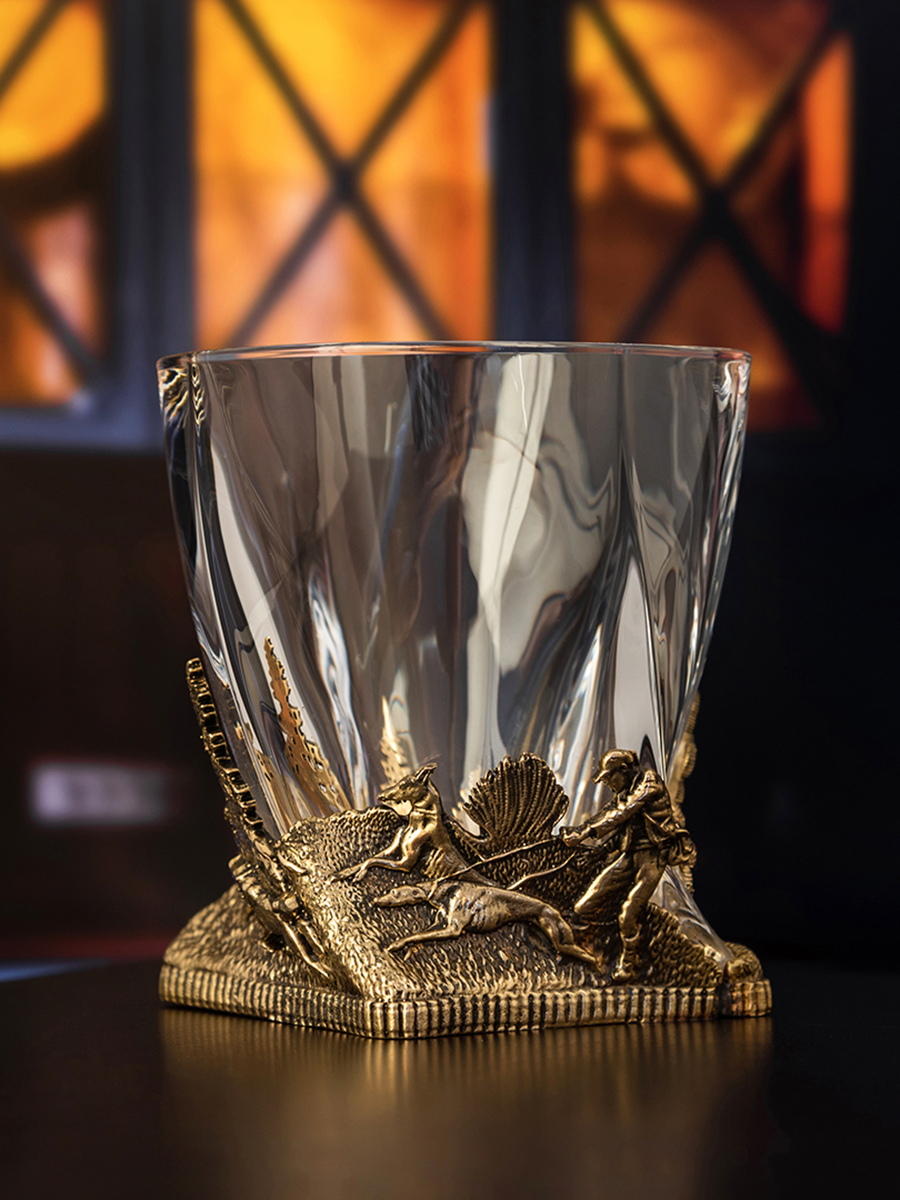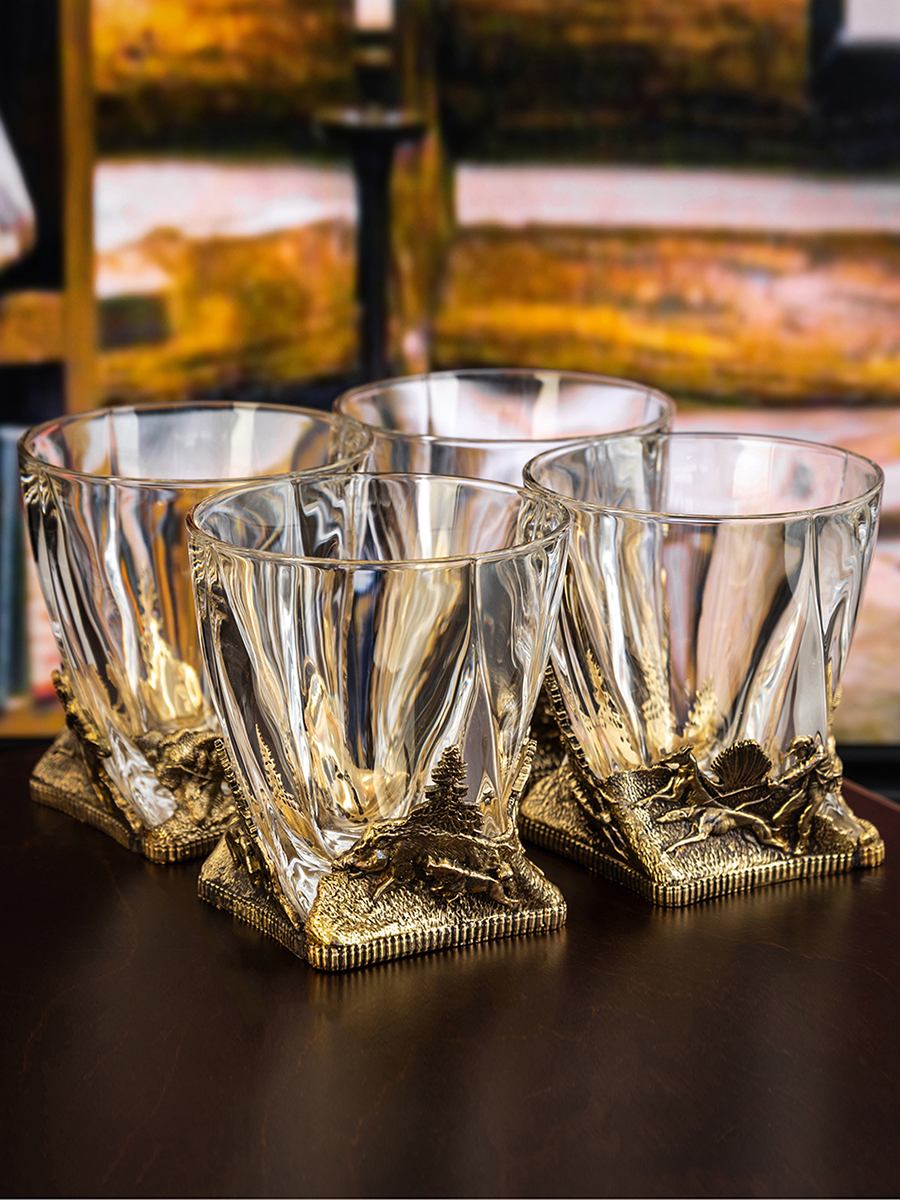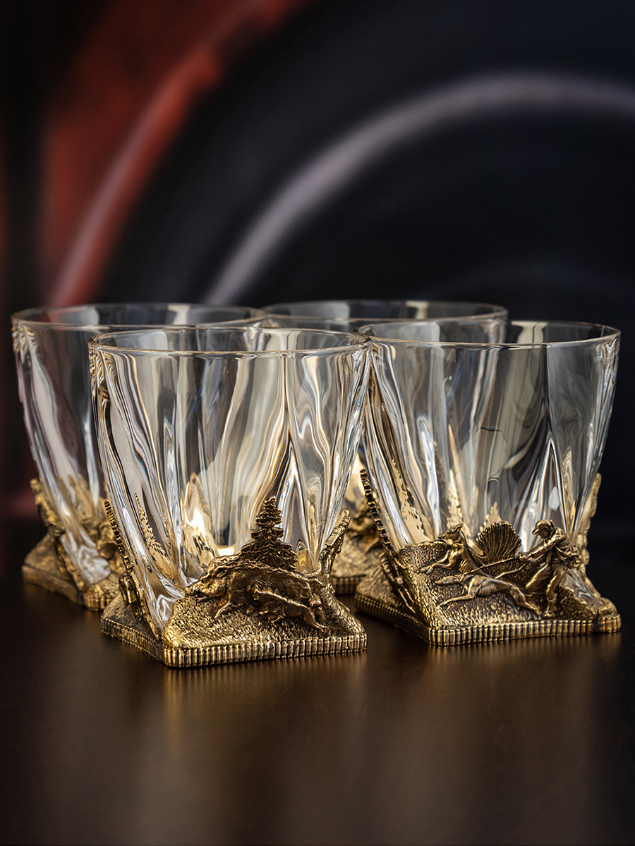 Набор из 4-х бокалов для ВИСКИ ручная работа Охота на кабана в плдарочной упаковке