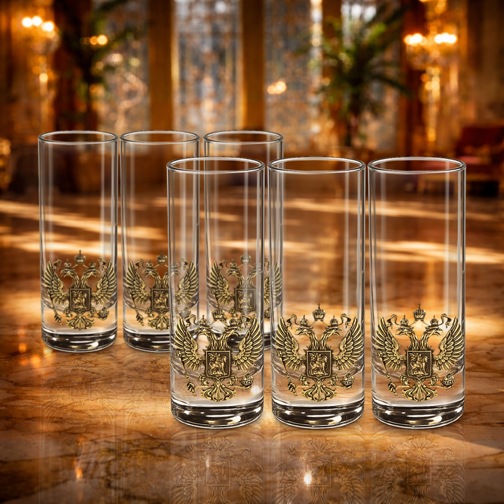 Набор из 6-ти стопок Сиде с накладками Герб РФ в черной подарочной коробке с печатью Великая Россия