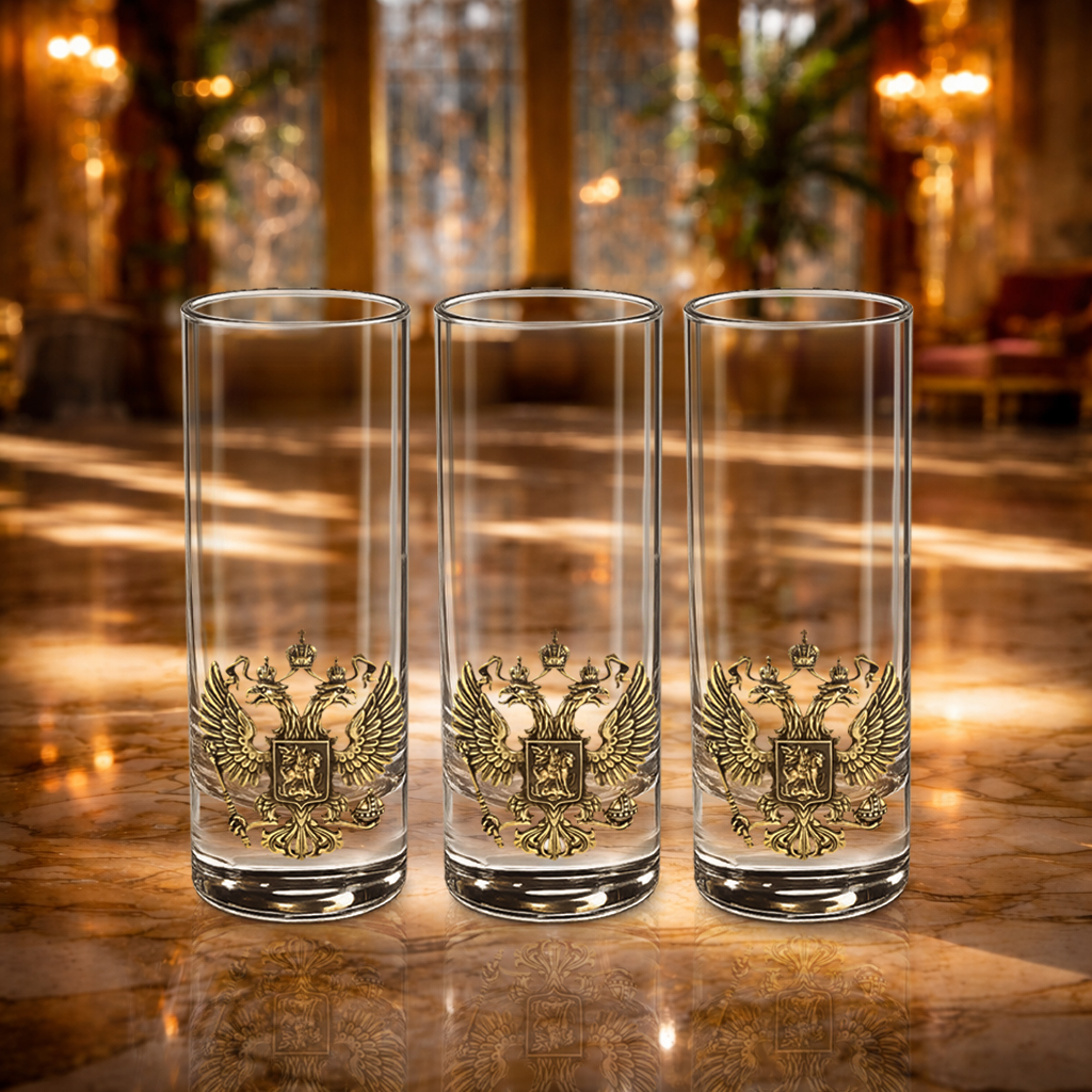 Набор из 3-х стопок Сиде с накладками Герб РФ в черной подарочной коробке с печатью Великая Россия