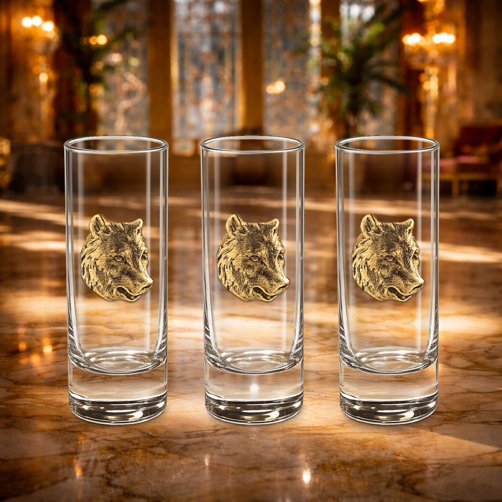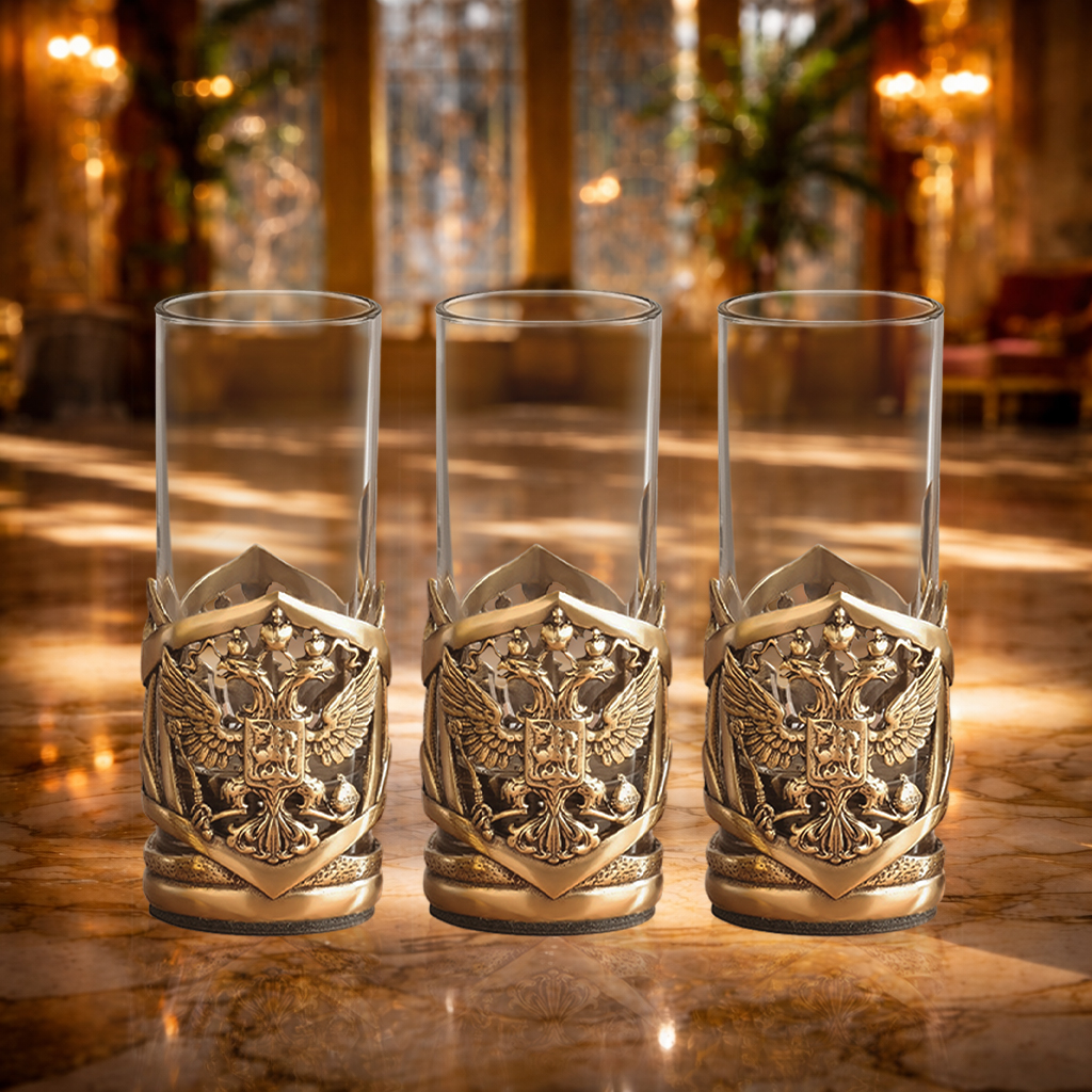 Набор из 3-х стопок-патронов Герб РФ в черной подарочной коробке с печатью Герб Великая Россия