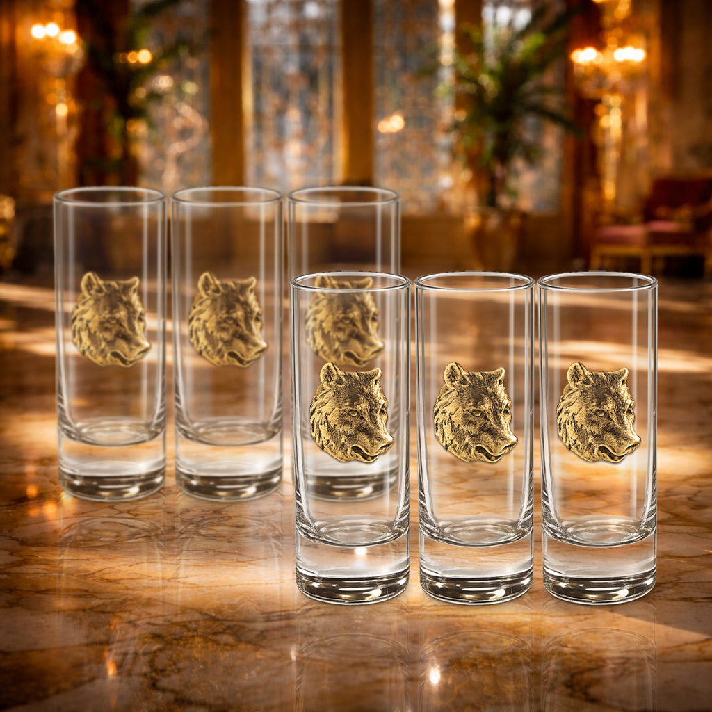 Набор из 6-ти стопок Сиде с накладками Герб РФ в черной подарочной коробке с печатью Победное слово