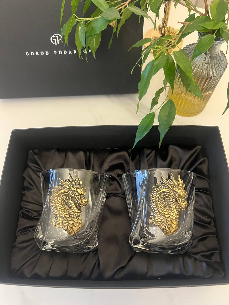 Набор из 2-х бокалов для виски с накладками Дракон в черной коробке