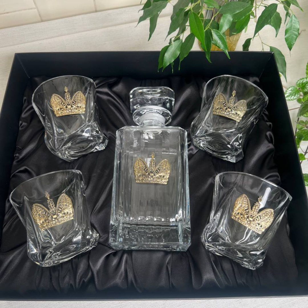 Набор со штофом Корона: Штоф Таймлесс, 4 бокала для виски с накладками в черной коробке