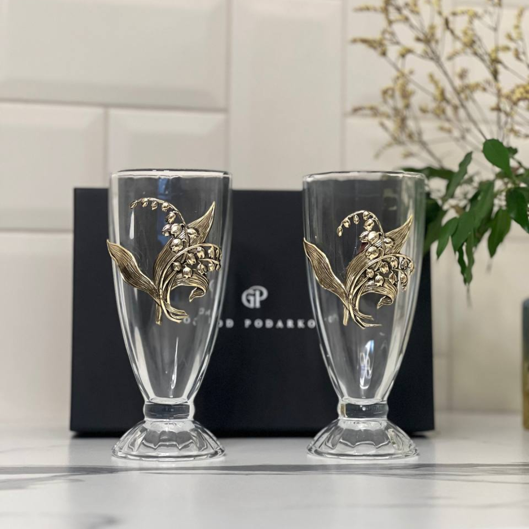 Набор для коктейлей и смузи: 2 бокала с накладками Ландыш в черной коробке