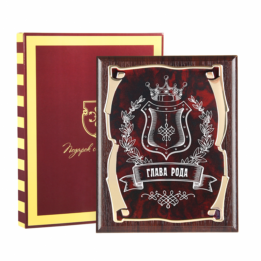 Плакетка наградная Корона Глава Рода золотая серия