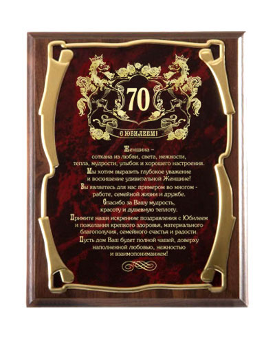 Плакетка наградная С юбилеем 70 лет! (жен.) золотая серия