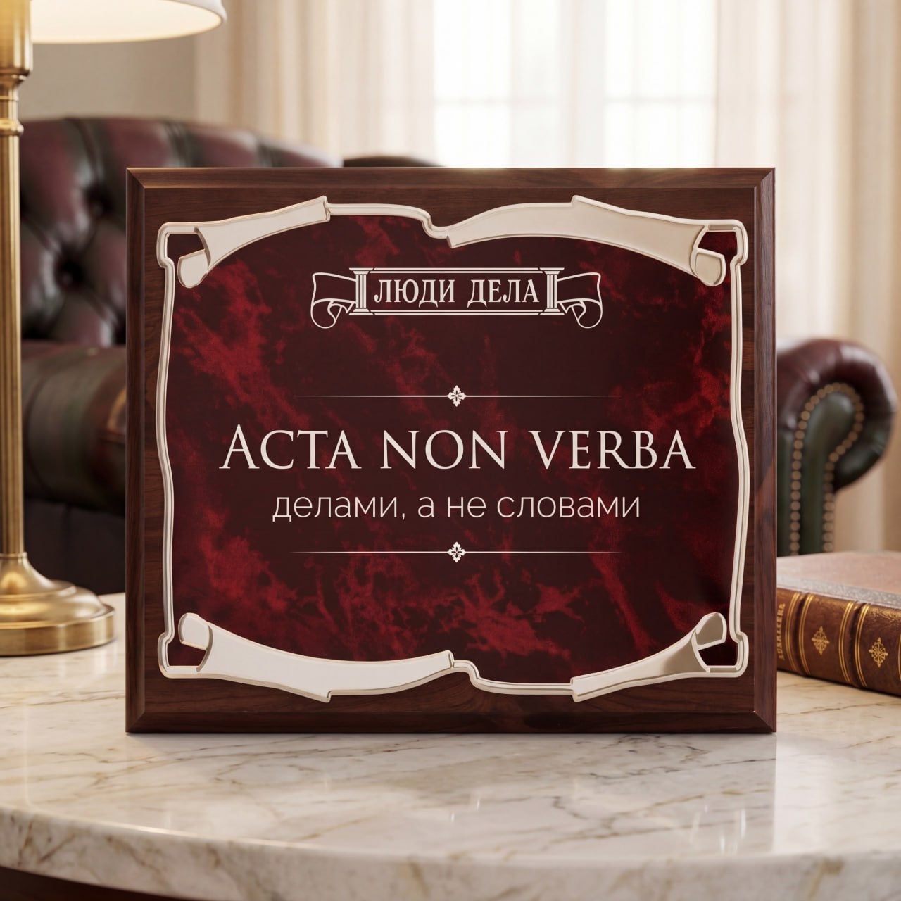 Плакетка Люди дела Делами, а не словами в черной подарочной коробке с печатью