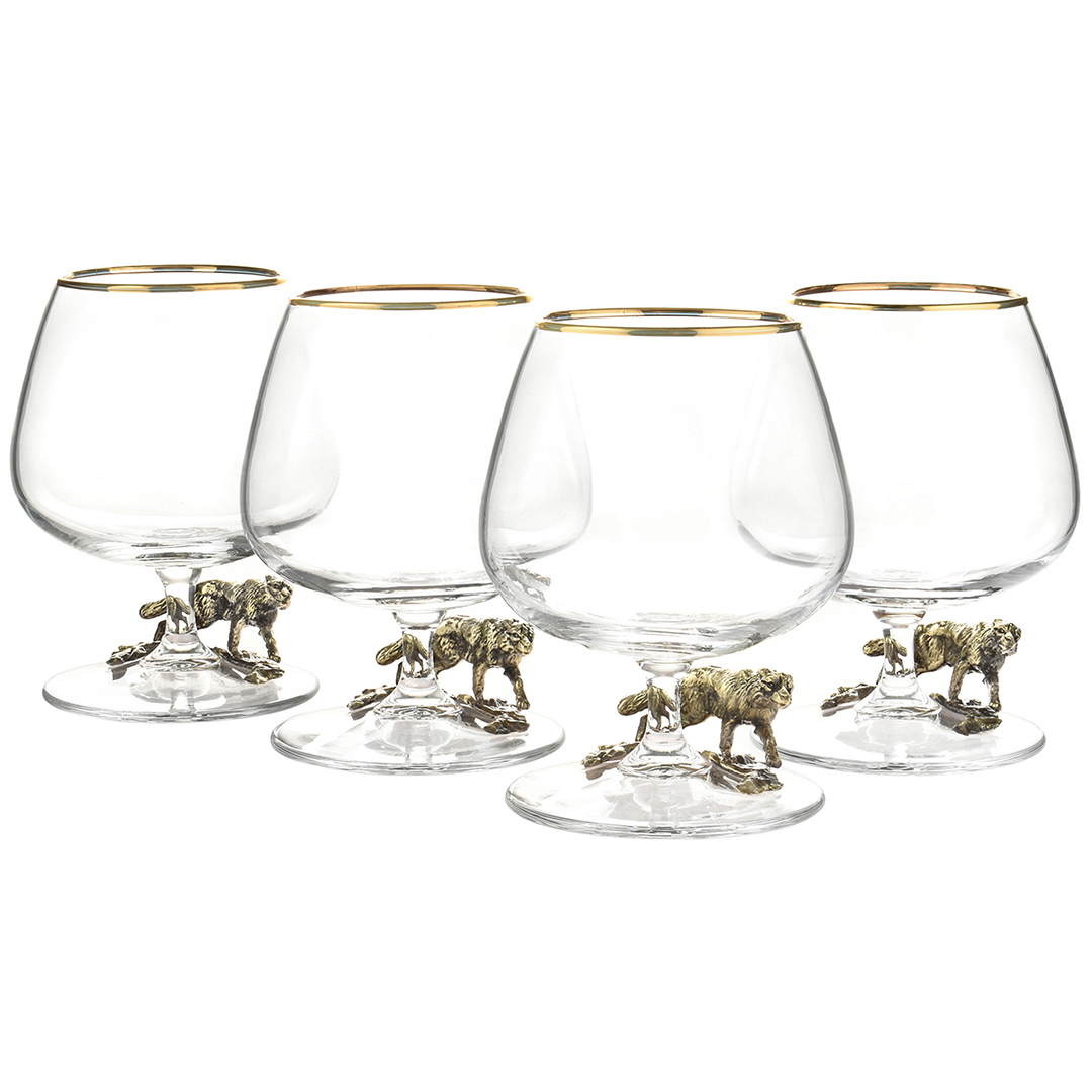 Подарочный набор из 4 бокалов для коньяка "Волк" в подарочной коробке
