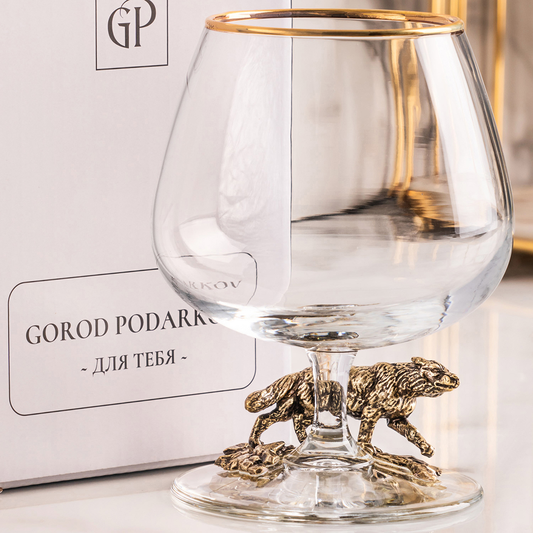 Подарочный бокал для коньяка "Волк" в картонной коробке