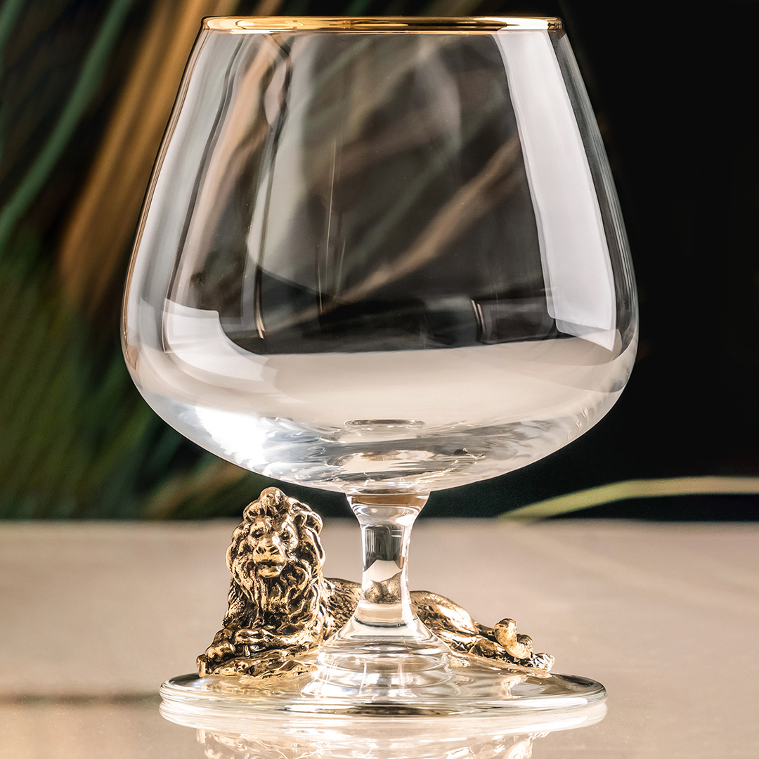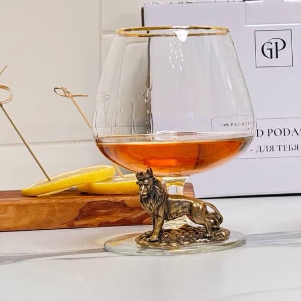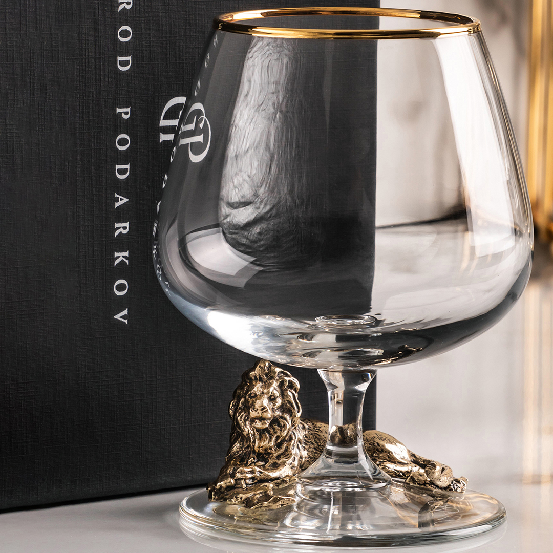 Подарочный бокал для коньяка "Лев с короной" в картонной коробке