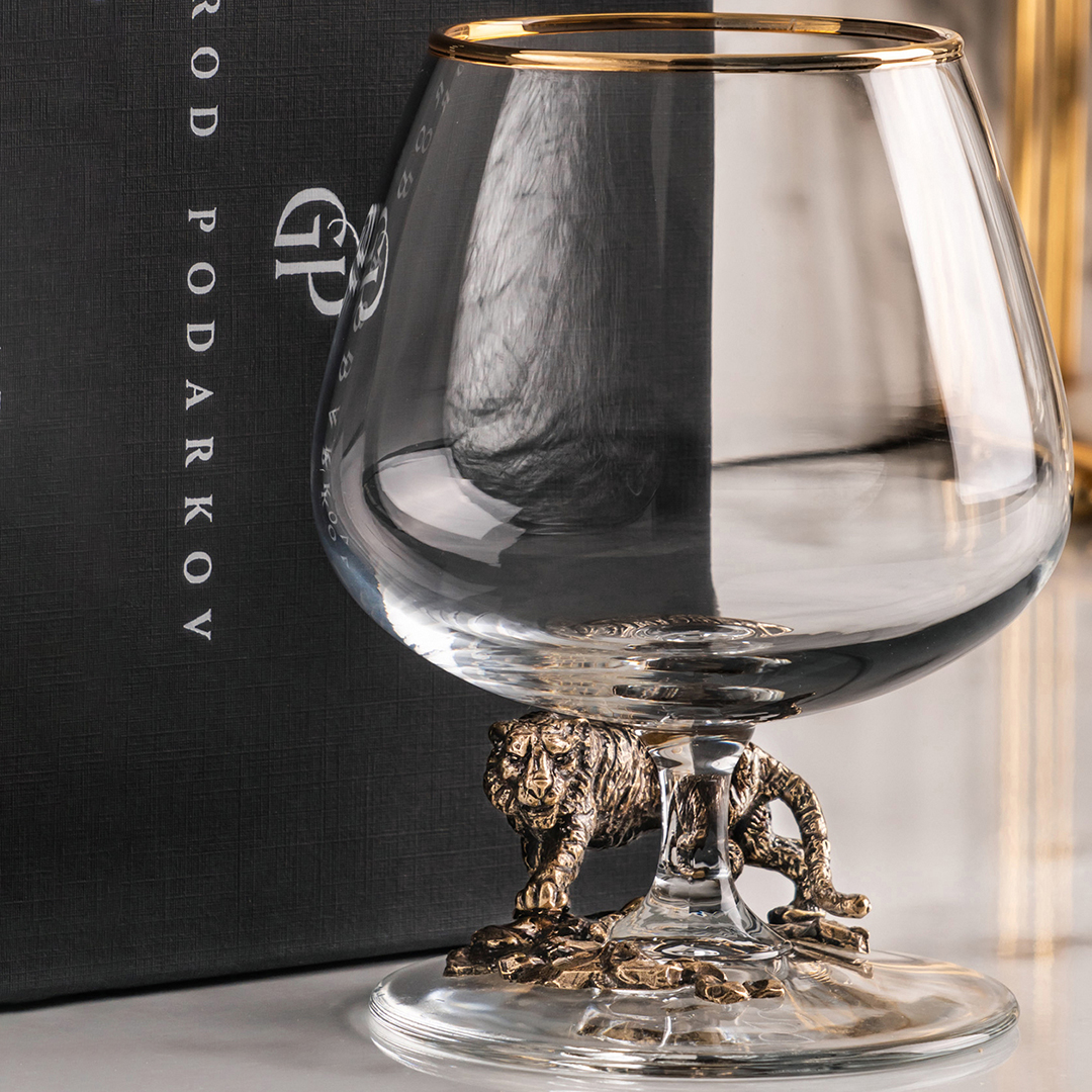 Подарочный бокал для коньяка "Львица" в картонной коробке