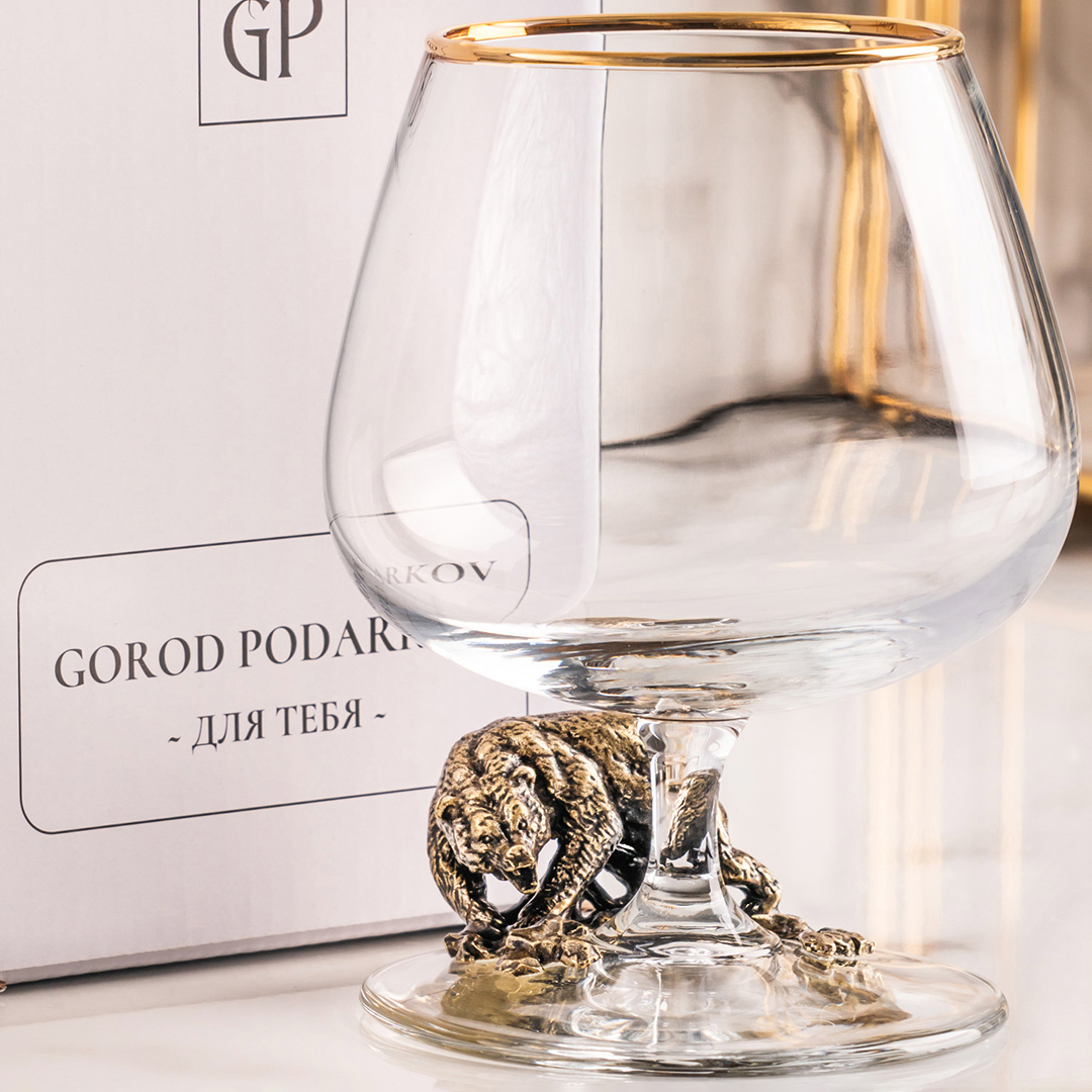 Подарочный бокал для коньяка "Медведь Гризли" в картонной коробке