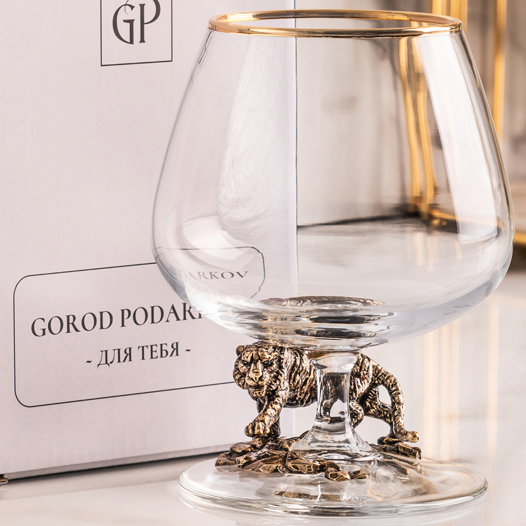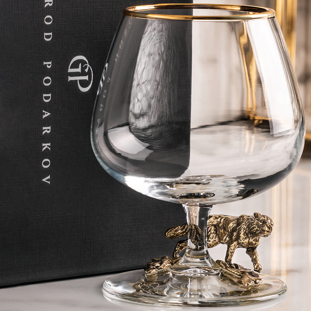 Подарочный бокал для коньяка "Тигр" в картонной коробке