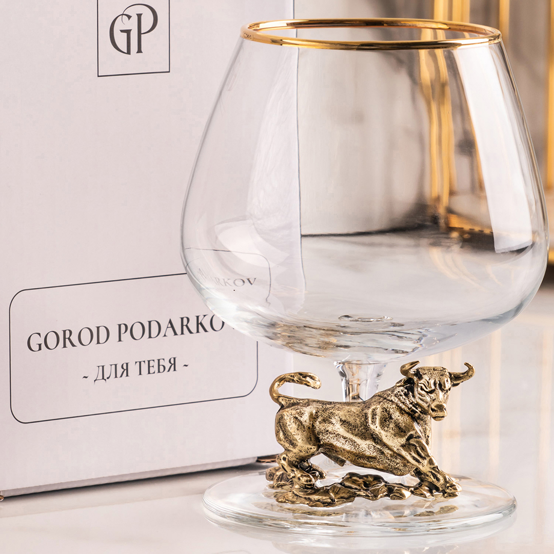 Подарочный бокал для коньяка "Бык" в картонной коробке