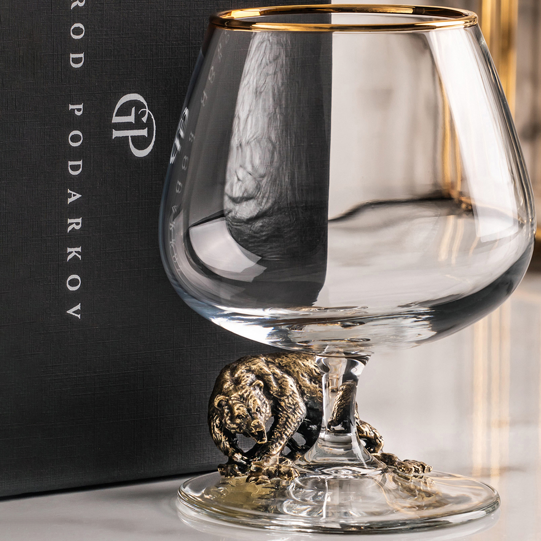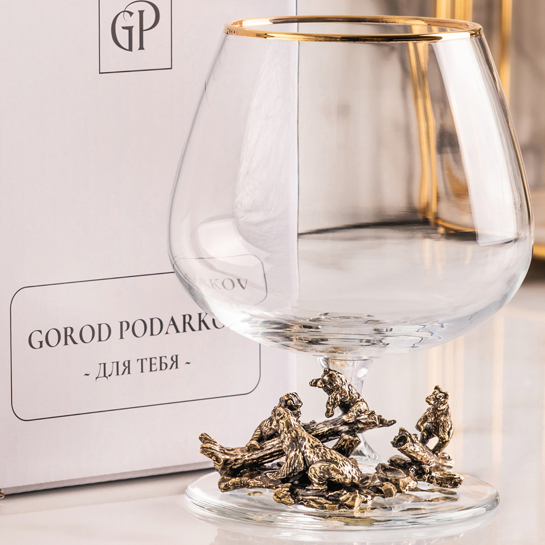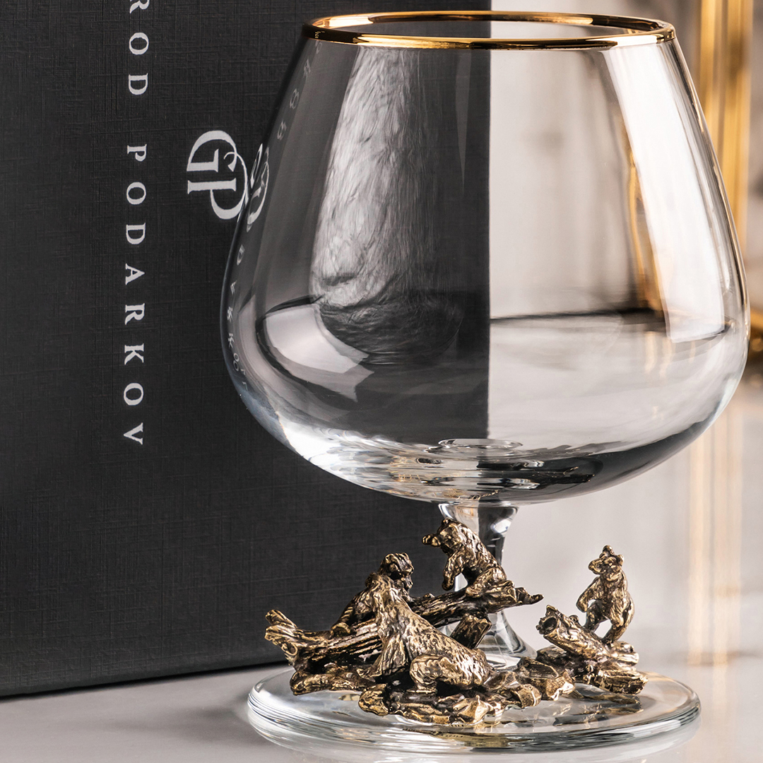 Подарочный бокал для коньяка "Медведи" в подарочной коробке