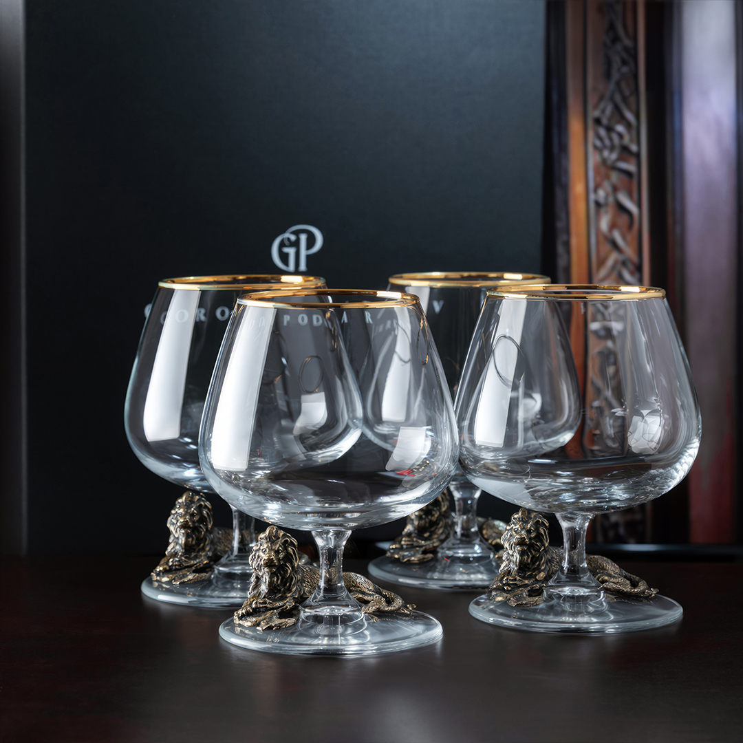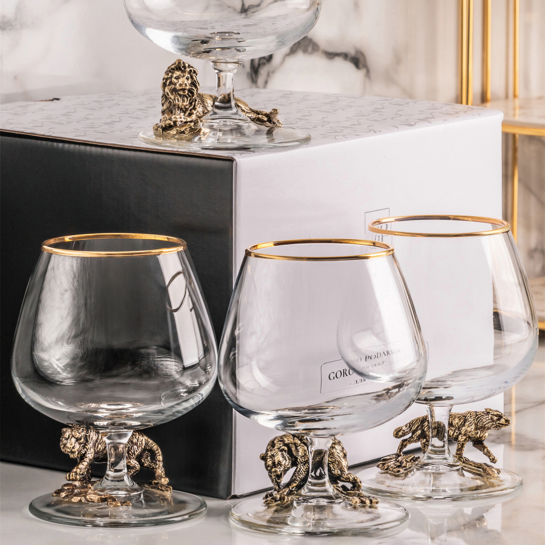 бокалы для коньяка с изображением льва в подарочной коробке