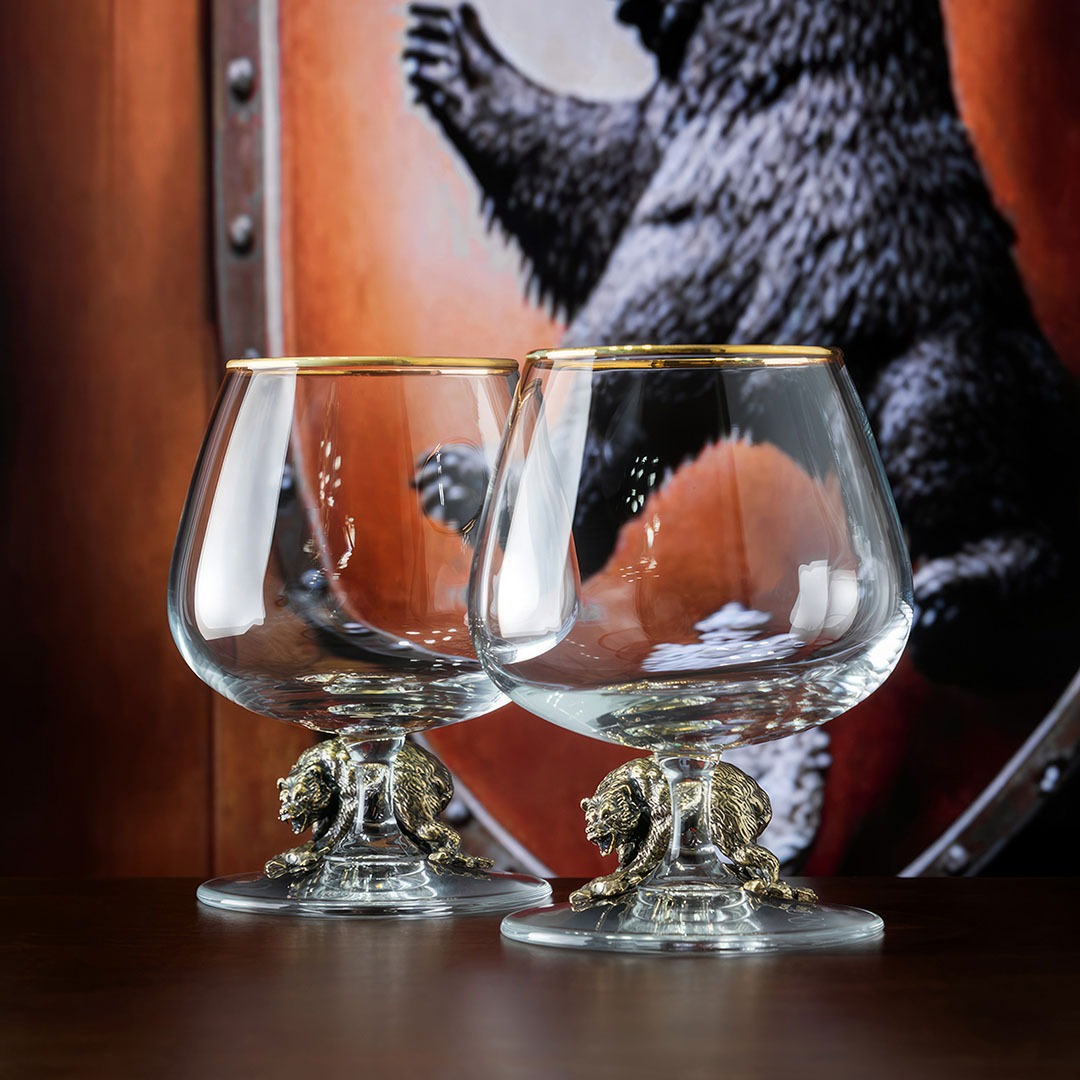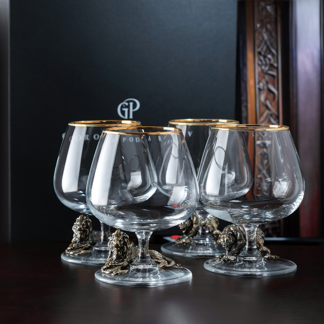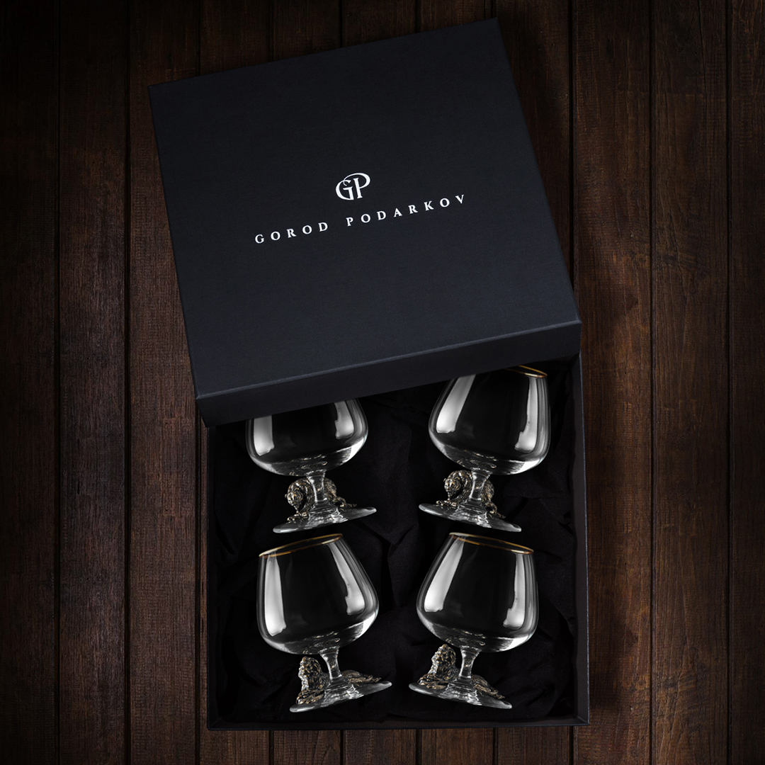 Подарочный набор из 4 бокалов для коньяка "Лев и Медведь Гризли" в подарочной коробке