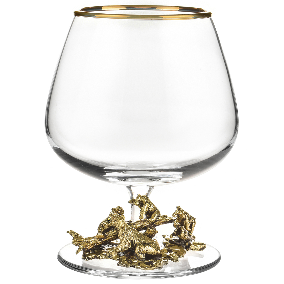 Подарочный набор из 4 бокалов для коньяка "Медведи" в подарочной коробке
