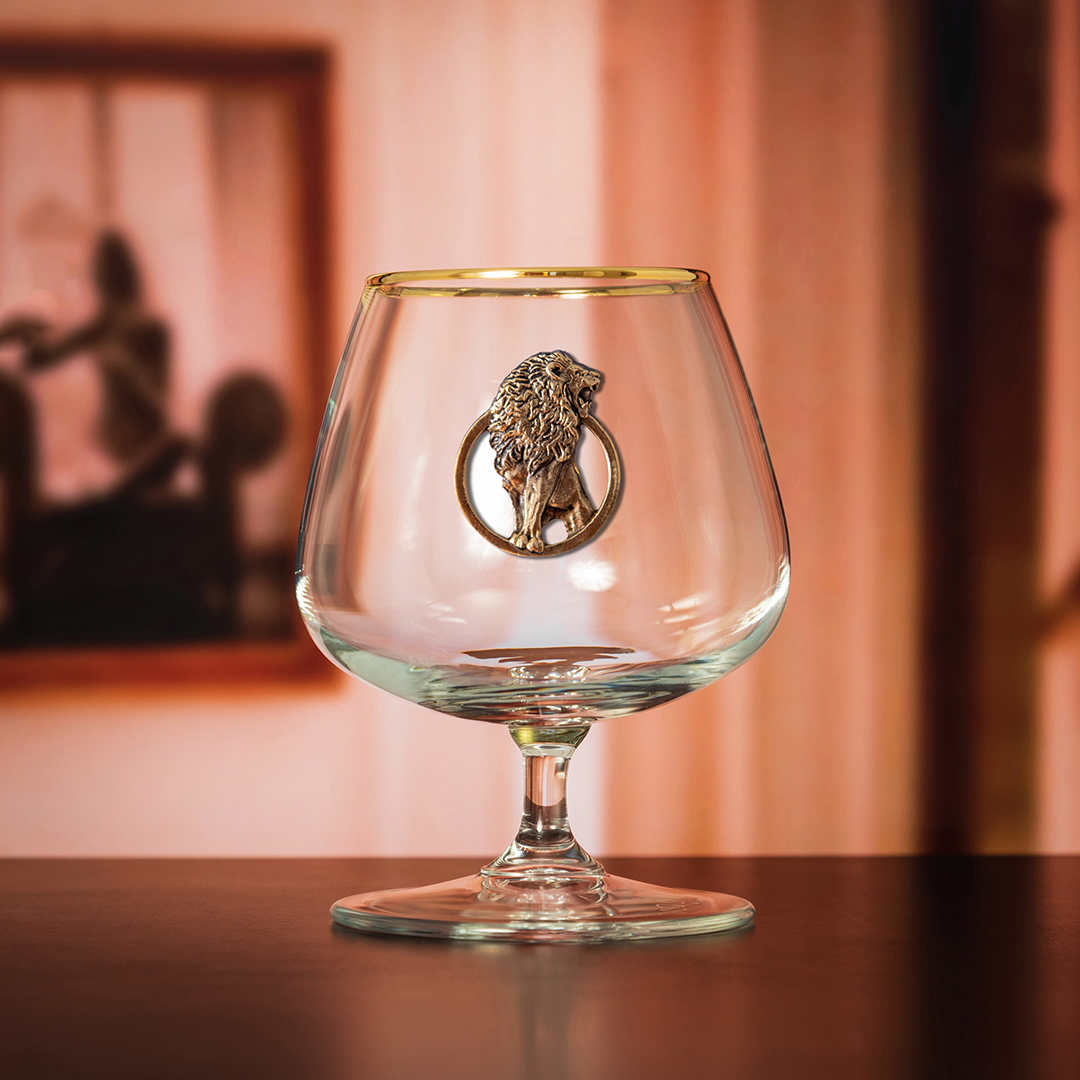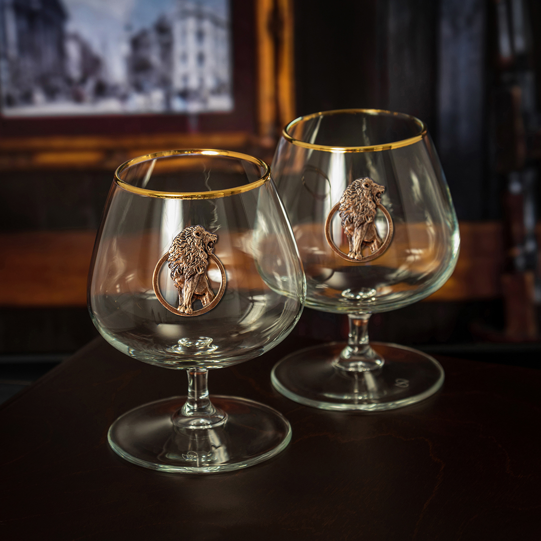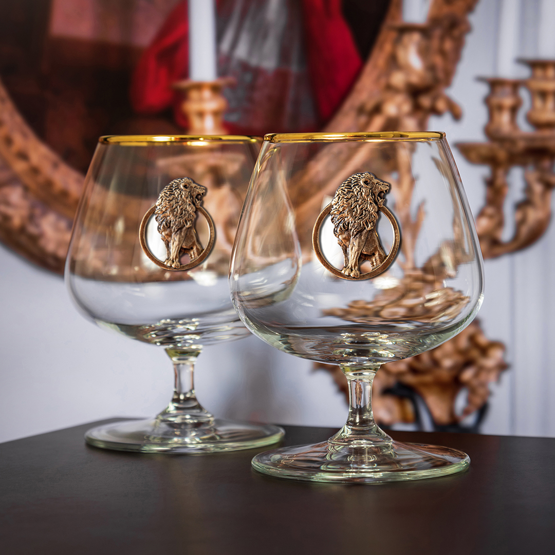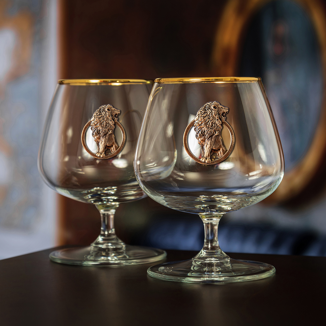 Набор 2 бокала для коньяка с накл."Лев" в черной подарочной коробке