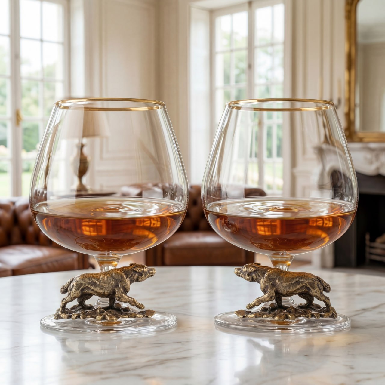 Набор из 2-х бокалов для коньяка "Волк" в черной подарочной коробке