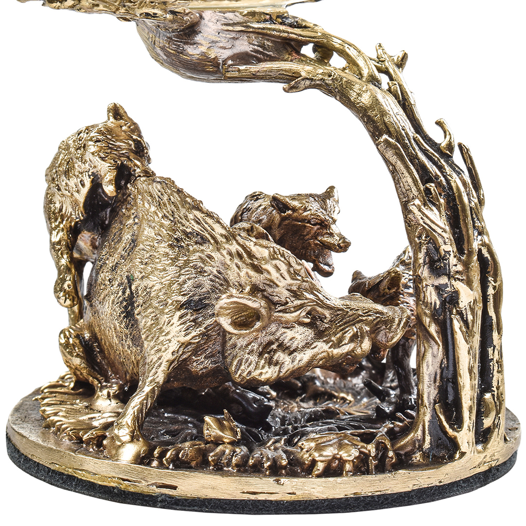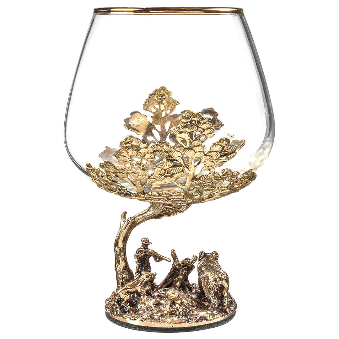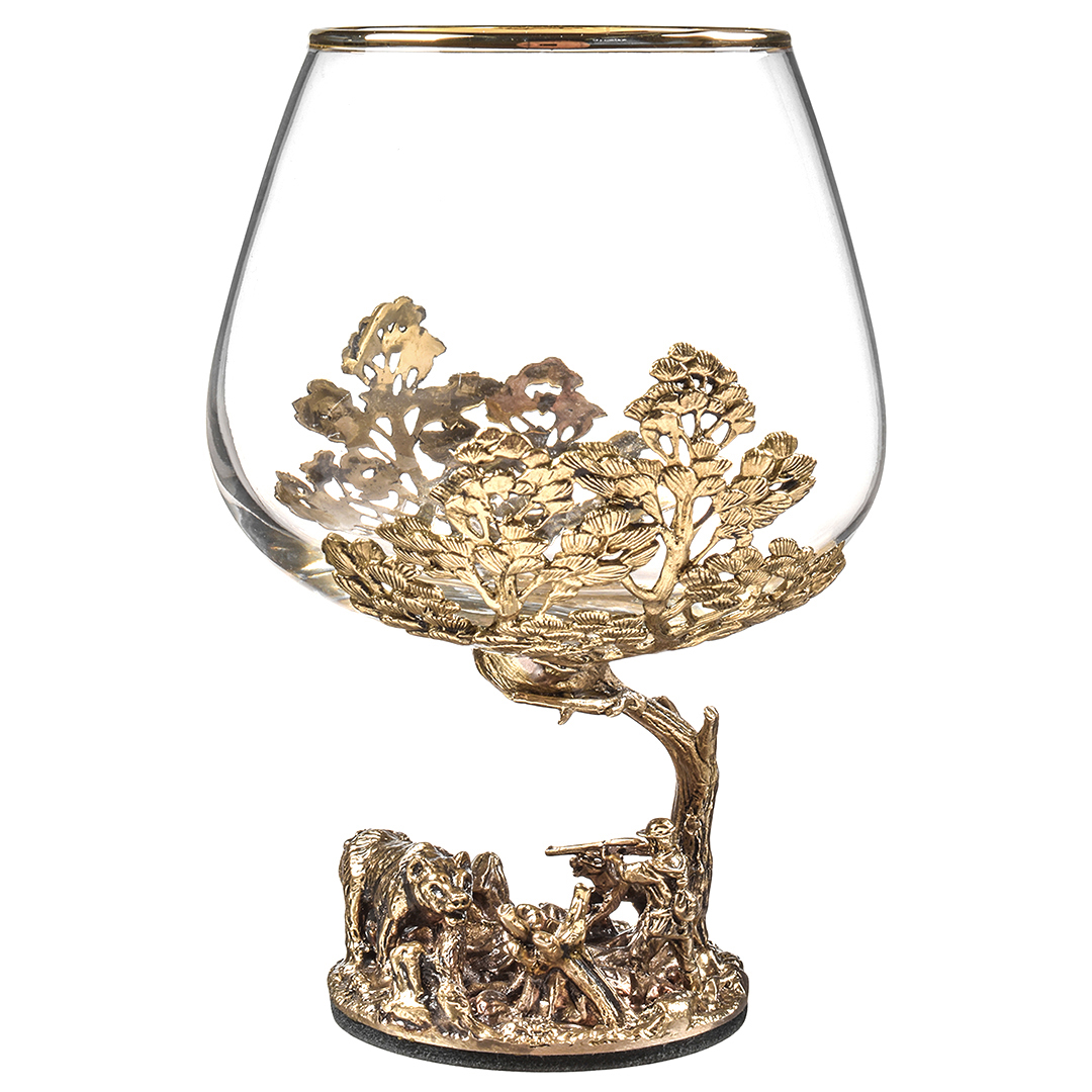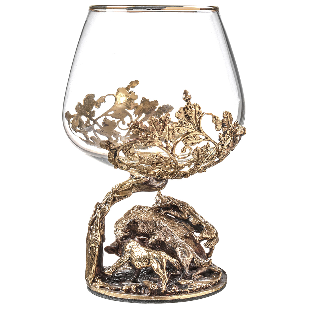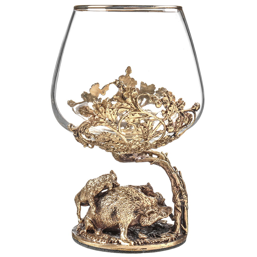Набор включает 2 бокала для коньяка с латунным основанием "Охота на Вепря" и "Охота на Медведя" в деревянной шкатулке из массива.В отличие от многих других товаров на рынке, эти бокалы изготовлены исключительно из российских материалов, что придает им уникальность и исключительность.